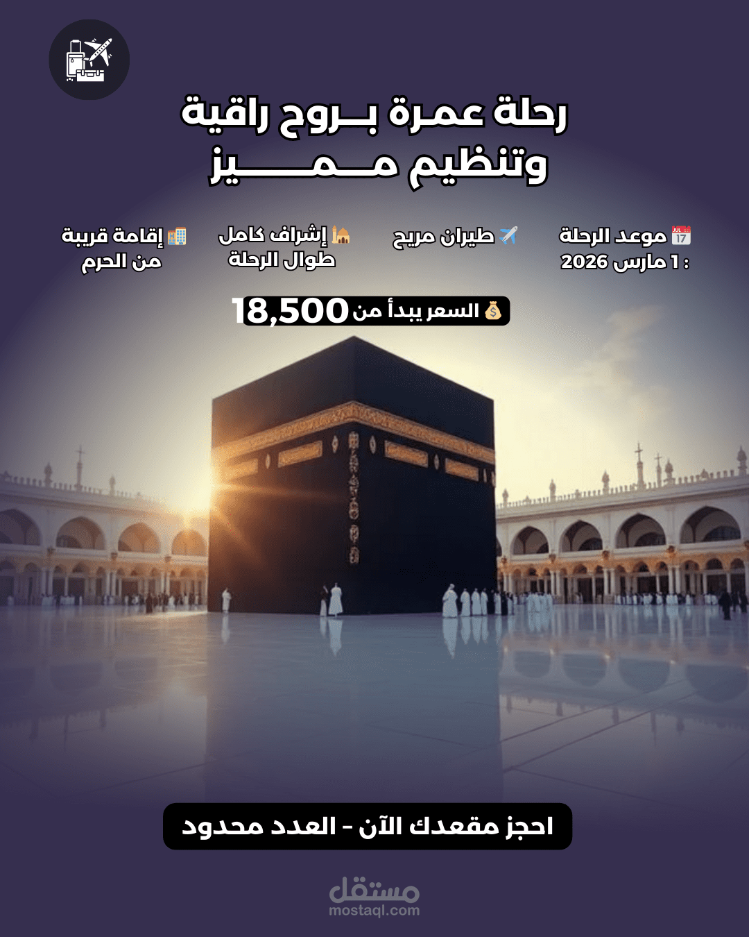 تم تنفيذها بأسلوب بصري هادئ وفخم يعكس روحانية المكان وقدسية الرحلة،