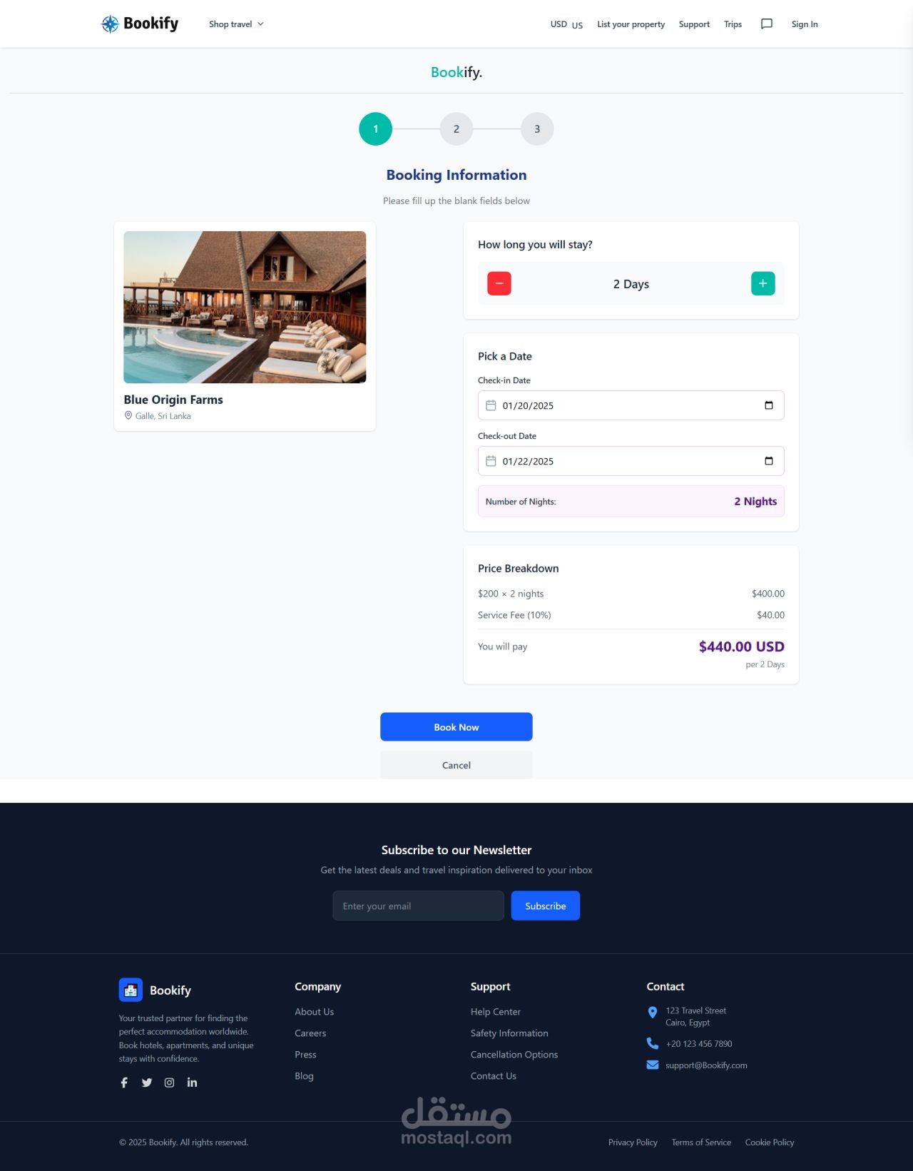 Bookify هو نظام حجز سفر احترافي قابل للتخصيص، مصمم لتقديم تجربة استخدام متكاملة وآمنة للشركات والأفراد الراغبين في إطلاق منصة حجز حديثة تنافس الحلول العالمية مثل Expedia. المنصة لا تقتصر فقط على حجز الفنادق، بل تشمل إدارة الرحلات السياحية، الحجوزات، والمدفوعات من خلال نظام ذكي ومرن قابل للتوسع.