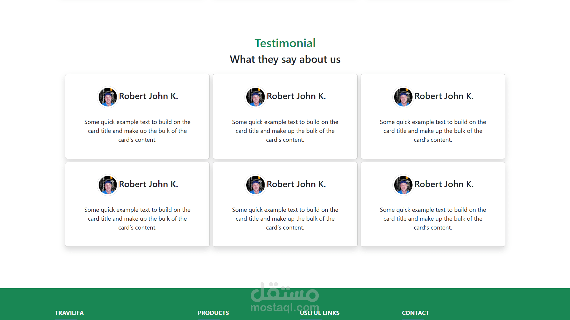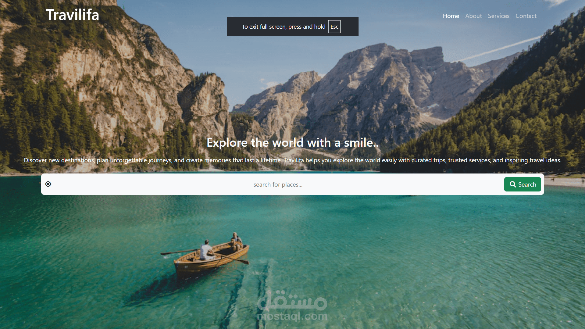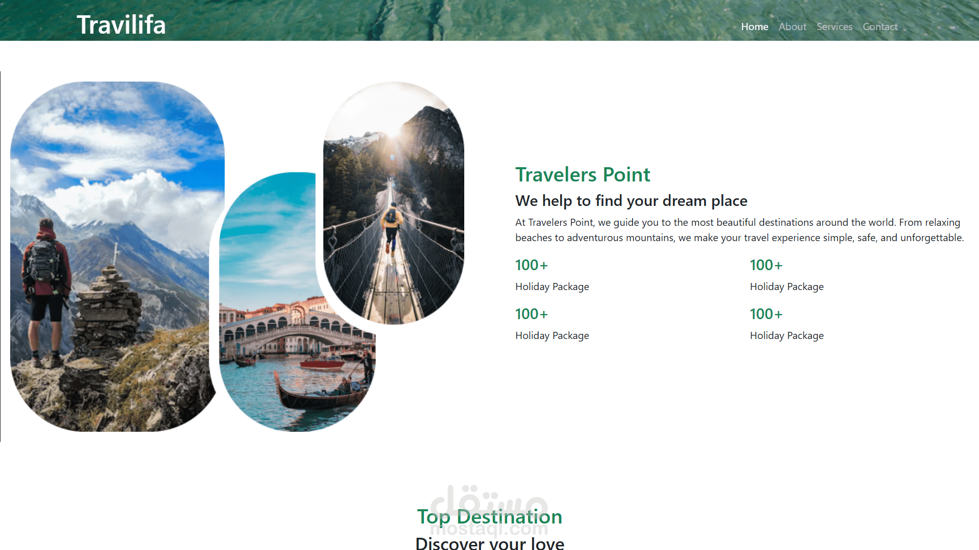 Travilifa هو موقع تقديم خدمات السفر والسياحة مصمم بشكل أنيق ومنظم، باستخدام HTML و Bootstrap فقط بدون أي جافاسكريبت، وده بيظهر فهم ممتاز لاستخدام نظام الـ Grid والـ Components الجاهزة من Bootstrap لتنفيذ واجهة مستخدم احترافية.