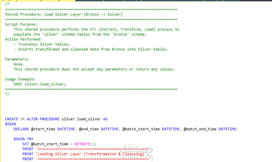 Silver Layer: This layer includes data cleansing, standardization, and normalization processes to prepare data for analysis.