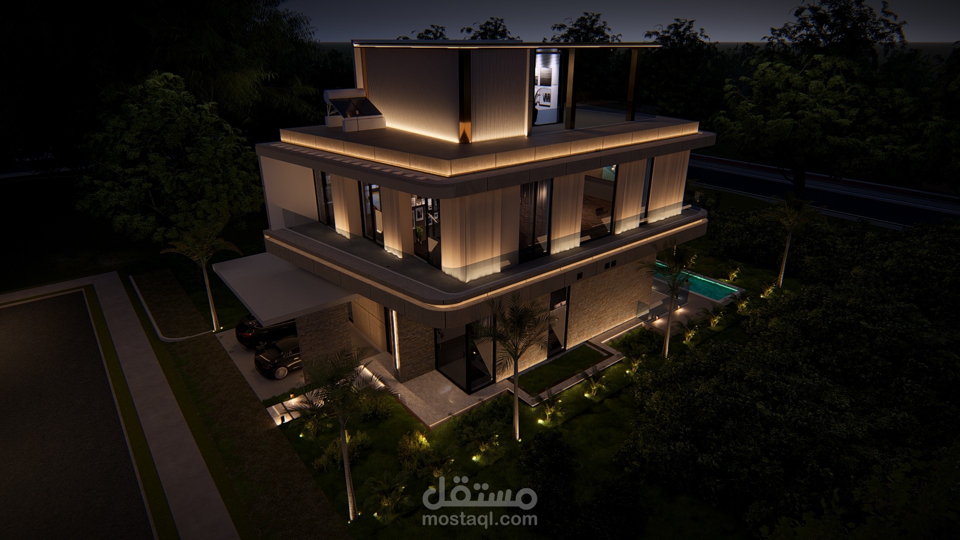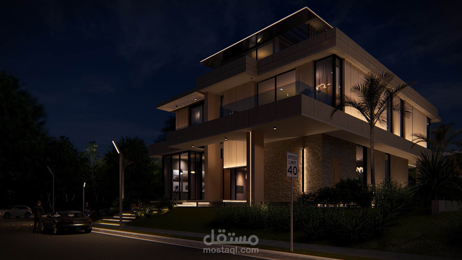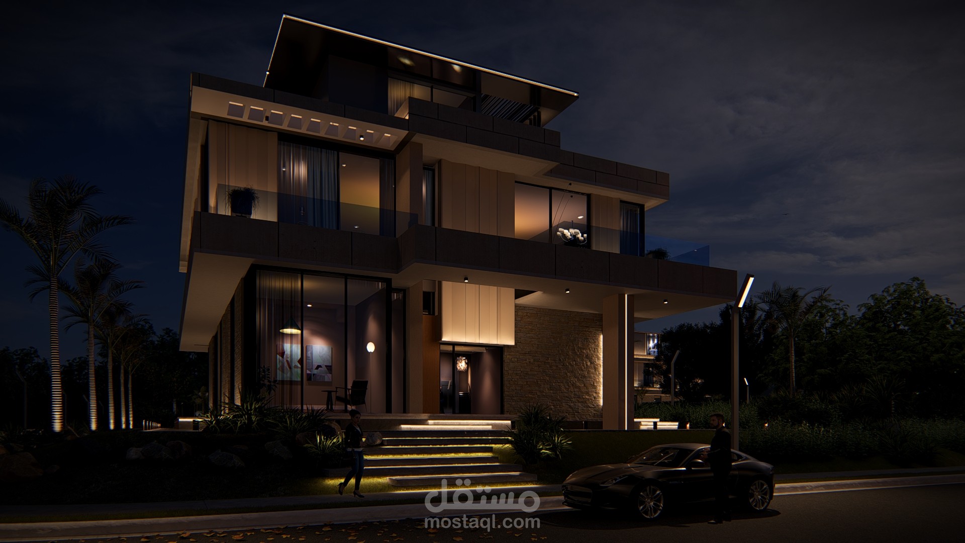 Project: Modern facade lighting for a contemporary villa in Riyadh.
