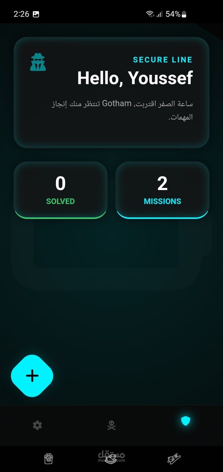 نظام رسائل تحفيزية ذكي: مبرمج بنظام (Bat-Signals) الذي يرسل رسائل تشجيعية غامضة للمستخدم عند إتمام المهام لتعزيز شعور الإنجاز.