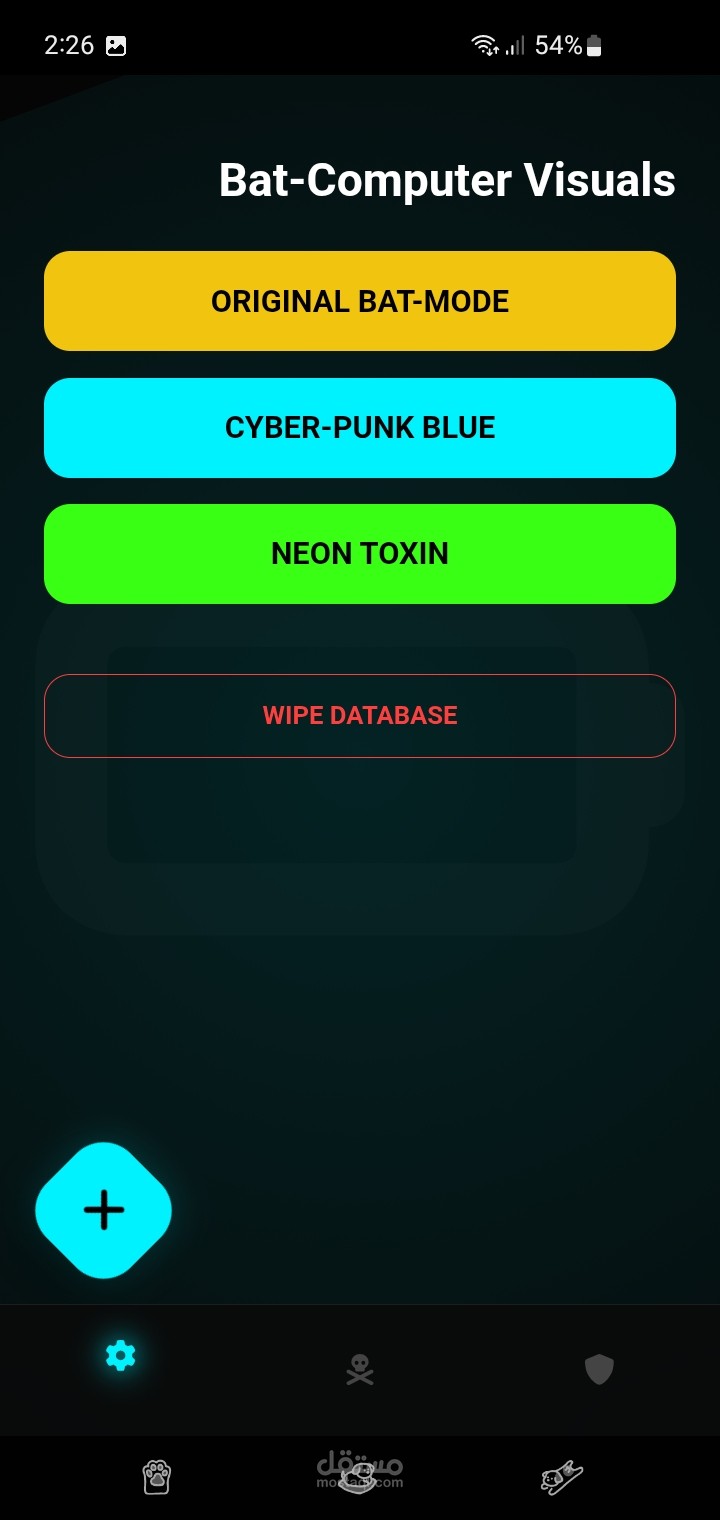 نظام ثيمات غامض (Multi-Themes): يتضمن التطبيق 3 أوضاع بصرية احترافية (Bat-Mode الأصلي، Cyber-Punk Blue، و Neon Toxin) مع إمكانية التبديل اللحظي بينها دون التأثير على الأداء.