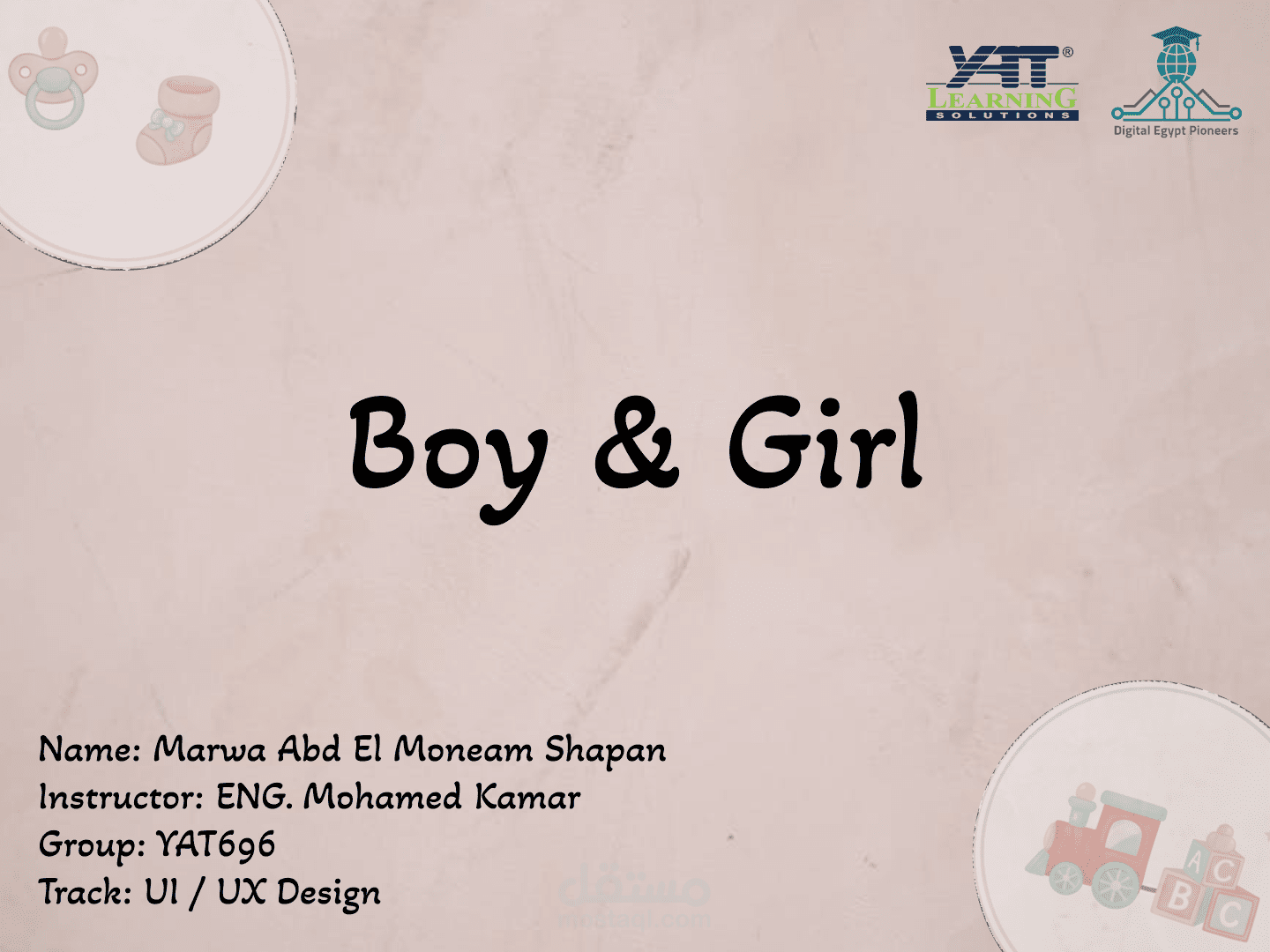تجربة المستخدم لتطبيق BOY&GIRL من حيث دراسة السوق وتجهيز استبيان وعمل persona وتجهيز كل مراحل UX لضمان نجاح التطبيق والوصول لأفضل تجربة مستخدم