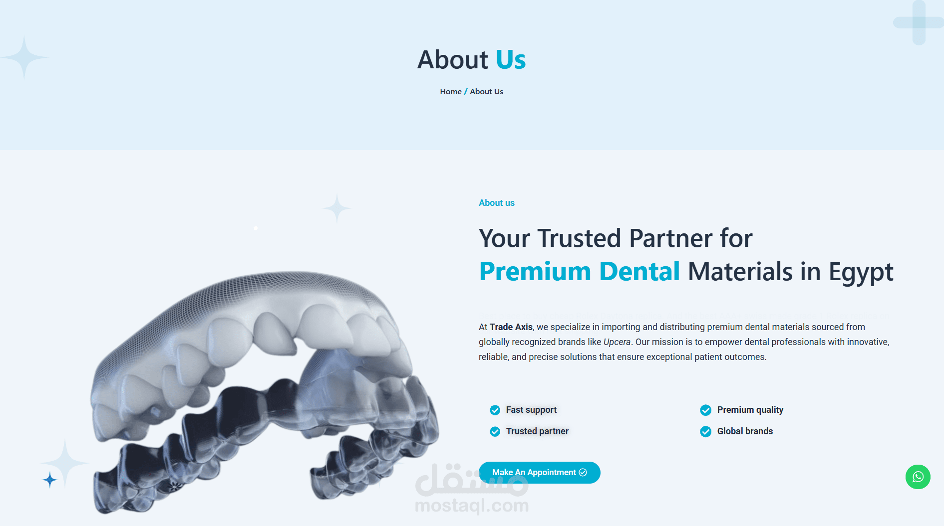 موقع إلكتروني تعريفي لمنصة TradeAxisEG المتخصصة في الخدمات التجارية وحلول الأعمال.