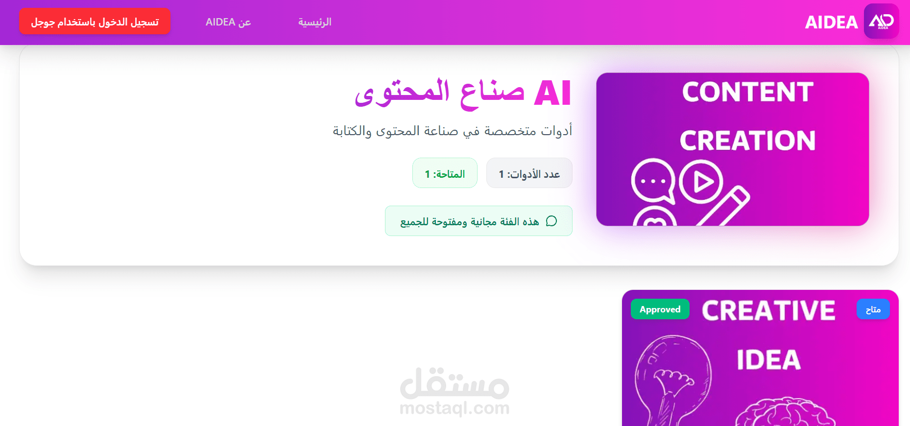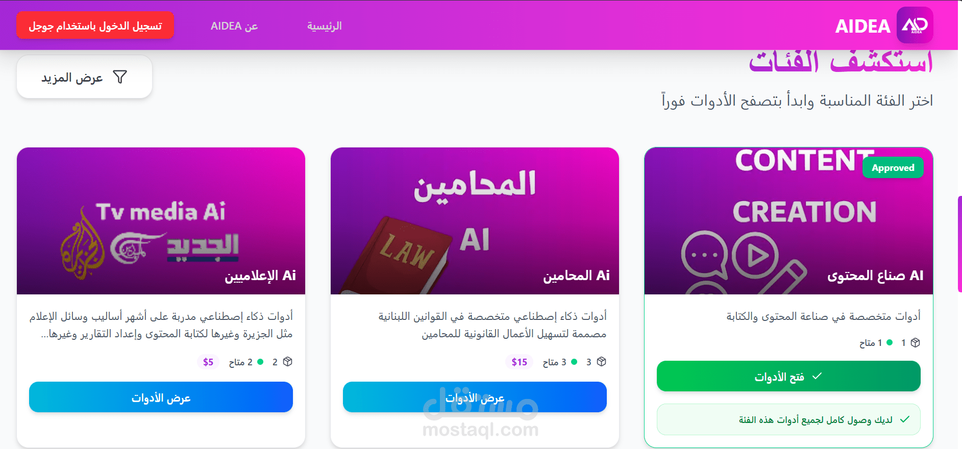 تم بناء Aidea كمنصة ويب حديثة تضم أدوات مدعومة بالذكاء الاصطناعي موجهة لتطبيقات واقعية. تم تطوير لوحة تحكم إدارية متكاملة لإدارة التصنيفات وطلبات وصول المستخدمين، مما يضمن تنظيمًا محكمًا وتحكمًا آمنًا. ركّزت على الواجهة الأمامية المتجاوبة وتصميم UI/UX عصري، لتقديم تجربة استخدام نظيفة وجذابة على جميع الأجهزة، مع تحقيق رؤية العميل وتقديم نتائج عالية الجودة.