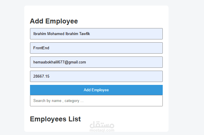 تطوير مهارات Frontend في التعامل مع DOM و Local Storage، وإنشاء تطبيق ويب عملي يوضح كيفية إدارة البيانات بالكامل على مستوى المتصفح بدون Backend.