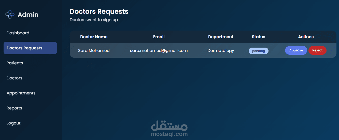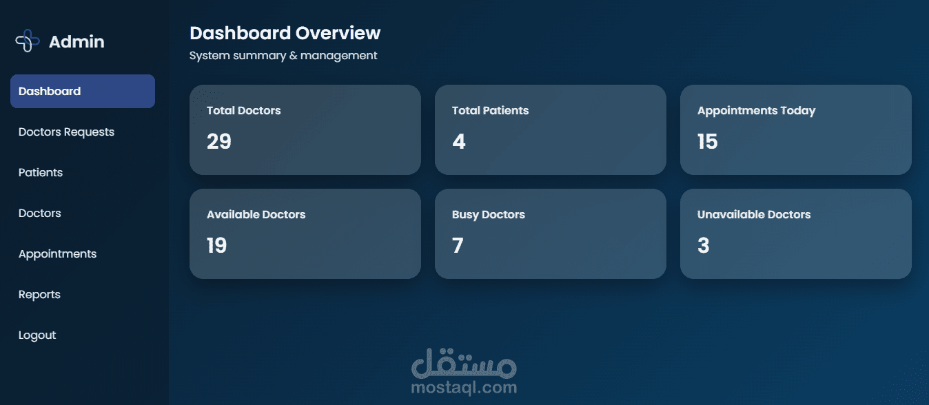 لوحة تحكم Admin: إدارة المستخدمين، المواعيد، والبيانات الصحية