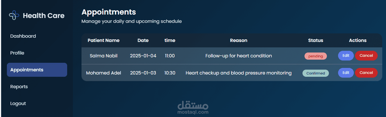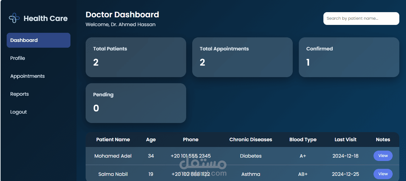 HealthCare System هو تطبيق ويب متكامل لإدارة العمليات الصحية، يوفّر تجربة سهلة وآمنة لكل من المرضى والإداريين والممارسين الصحيين.