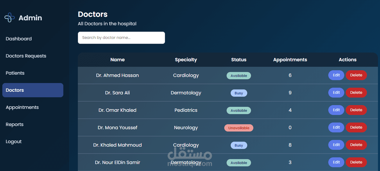 إدارة الأطباء: إضافة، تعديل، حذف، وجدولة مواعيدهم