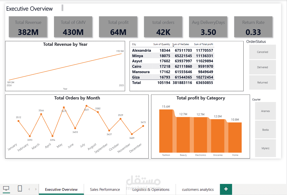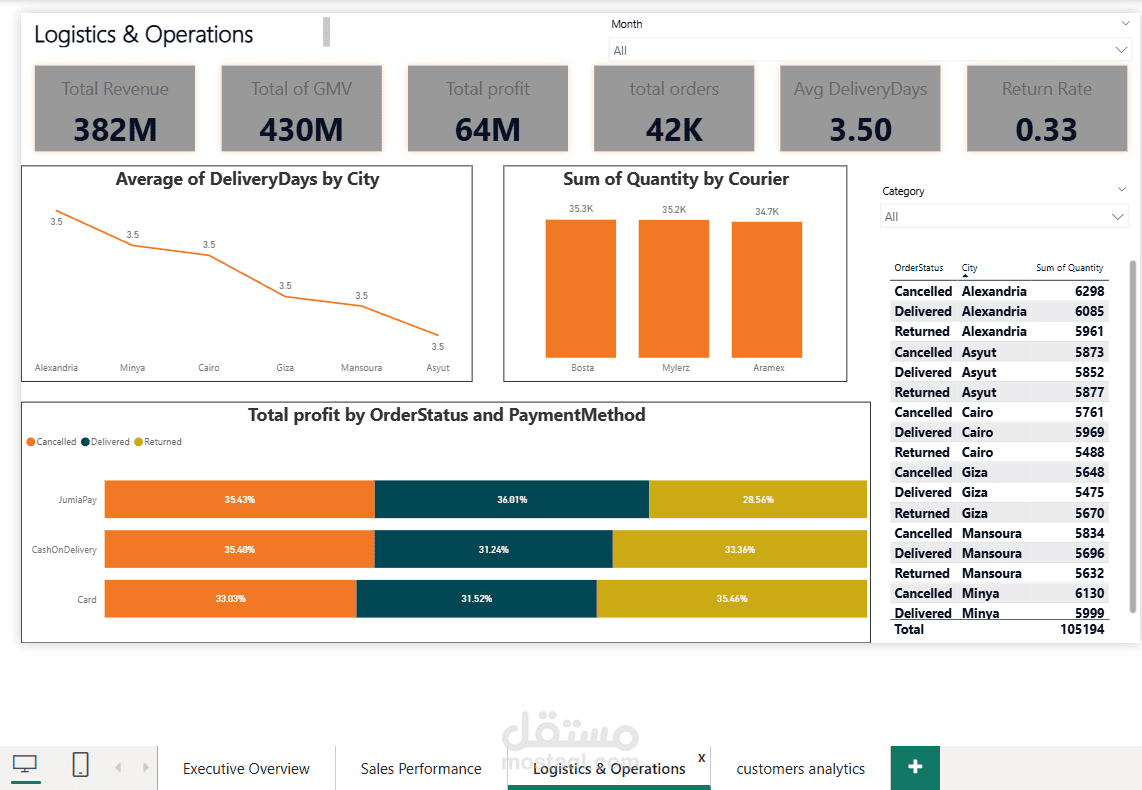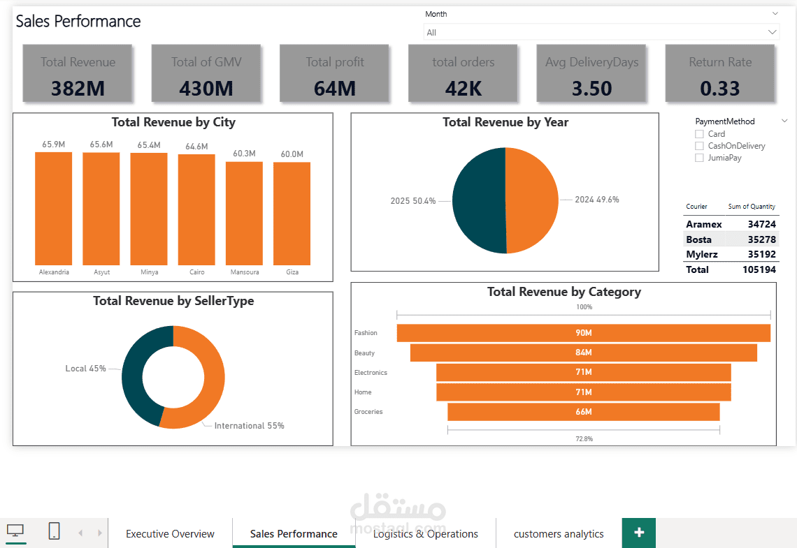 لوحة تحليلات التجارة الإلكترونية لجوميا | Power BI