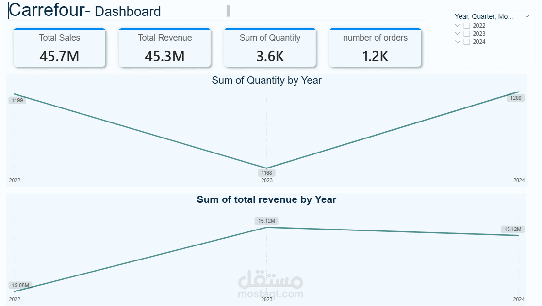 انخفضت الكميات في عام 2023 ثم تعافت في 2024، بينما ظل صافي الإيرادات (بعد الخصومات) مستقرًا نسبيًا على أساس سنوي.