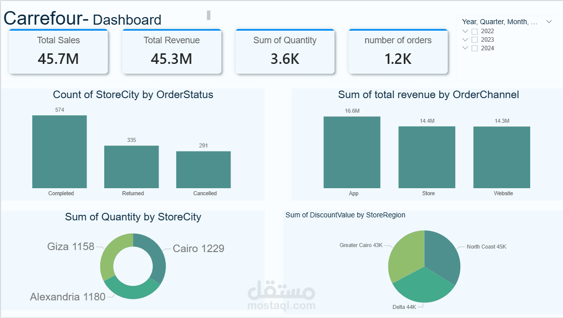 إجمالي المبيعات يقارب 46 مليون، مع صافي إيرادات حوالي 45 مليون بعد تطبيق الخصومات، ناتجة عن نحو 1.2 ألف طلب وحوالي 4 آلاف وحدة مباعة.