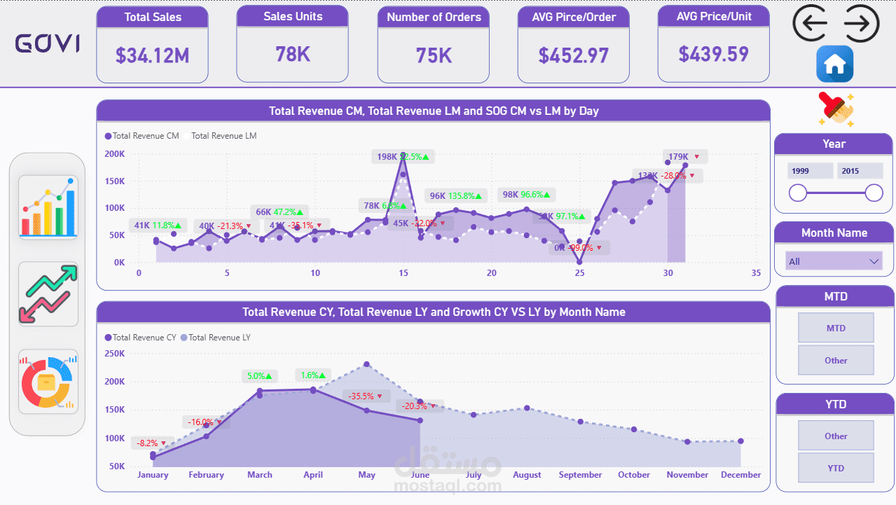 Daily Volatility: The daily chart shows high volatility, with spikes (up to +135%) followed immediately by sharp drops, suggesting inconsistent sales flow or sporadic large orders rather than steady recurring revenue.
