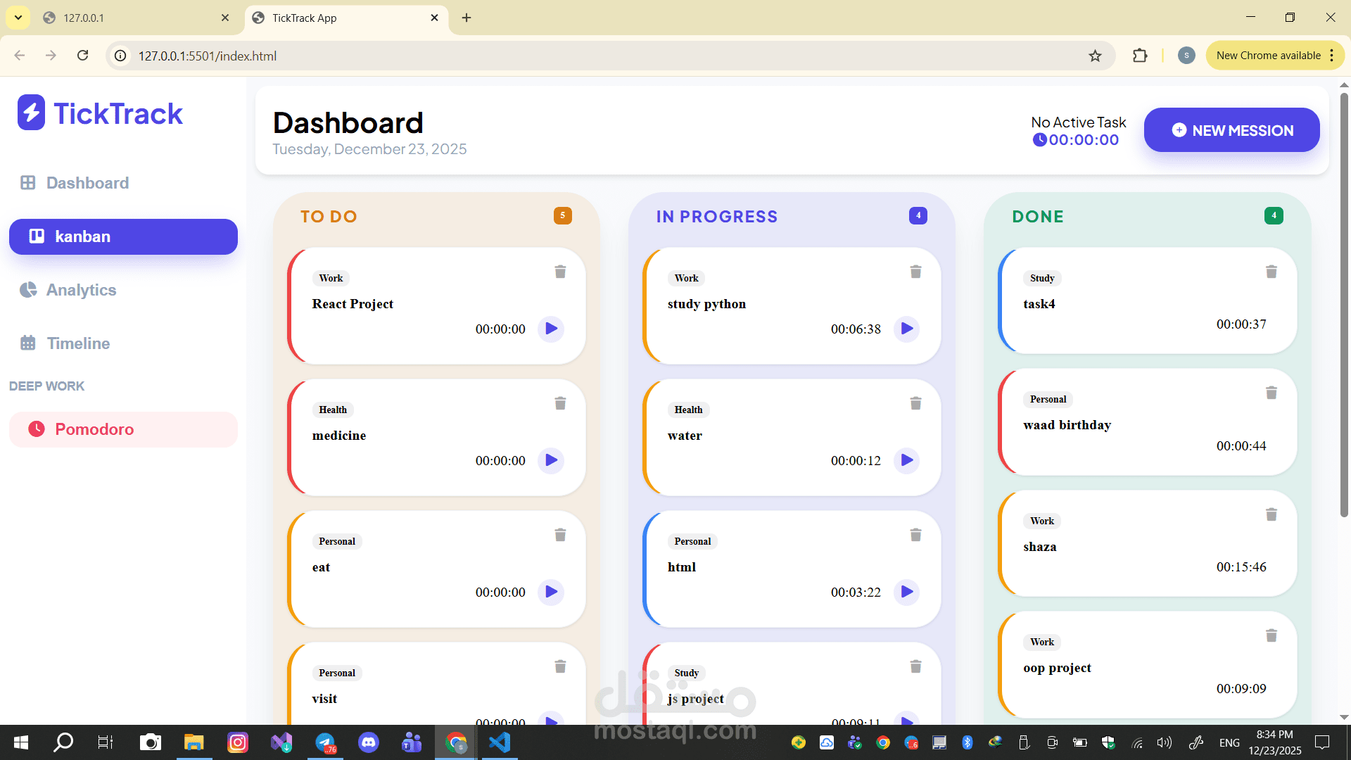 -إمكانية تتبع حالة المهمة (مكتملة / قيد التنفيذ / جديدة)