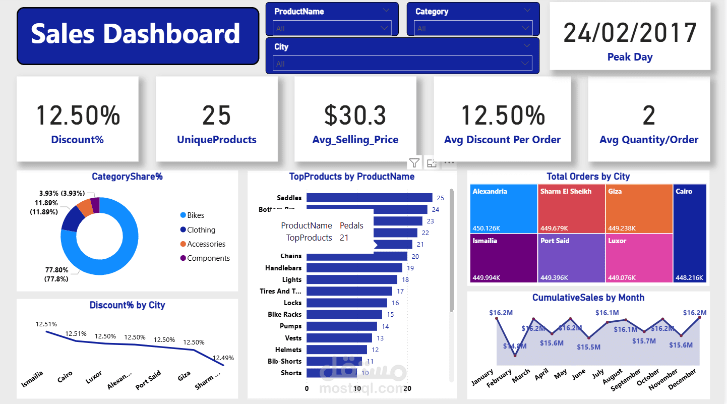 5- تحليل الأداء حسب المدن والفئات المختلفة للمنتجات.