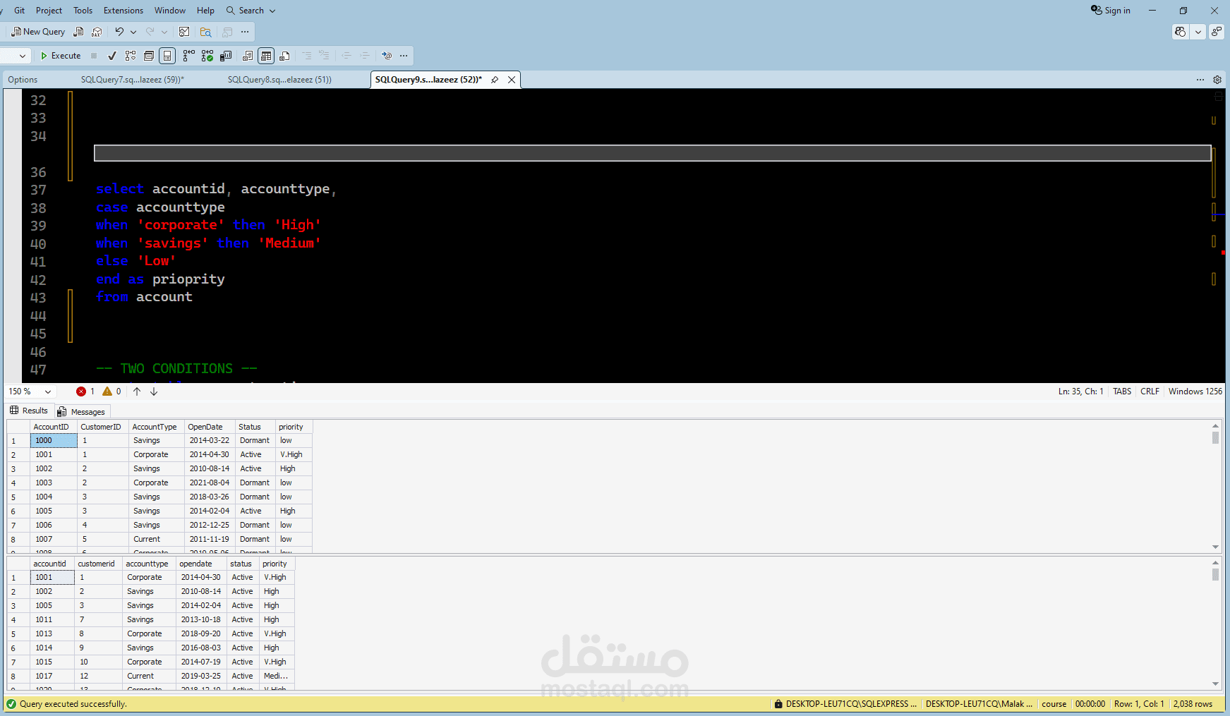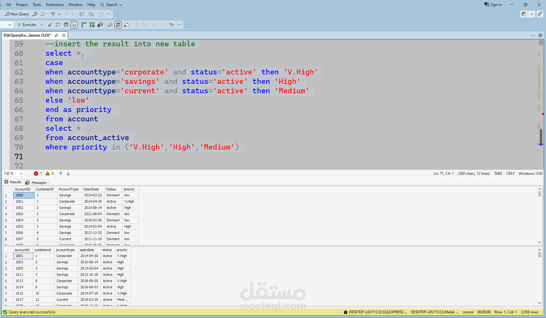 يربط المخطط بين هذه الكيانات من خلال علاقات دقيقة، حيث يتم ربط كل حساب بعميل محدد، وكل معاملة بحساب وفرع، كما يتم توثيق القروض والودائع والبطاقات ضمن الحسابات والفروع ذات الصلة. يتيح هذا النموذج تنظيم البيانات البنكية بشكل هيكلي، ويساعد في إعداد تقارير دقيقة، وتحليل سلوك العملاء، ودعم أدوات ذكاء الأعمال لاتخاذ قرارات أكثر فاعلية.