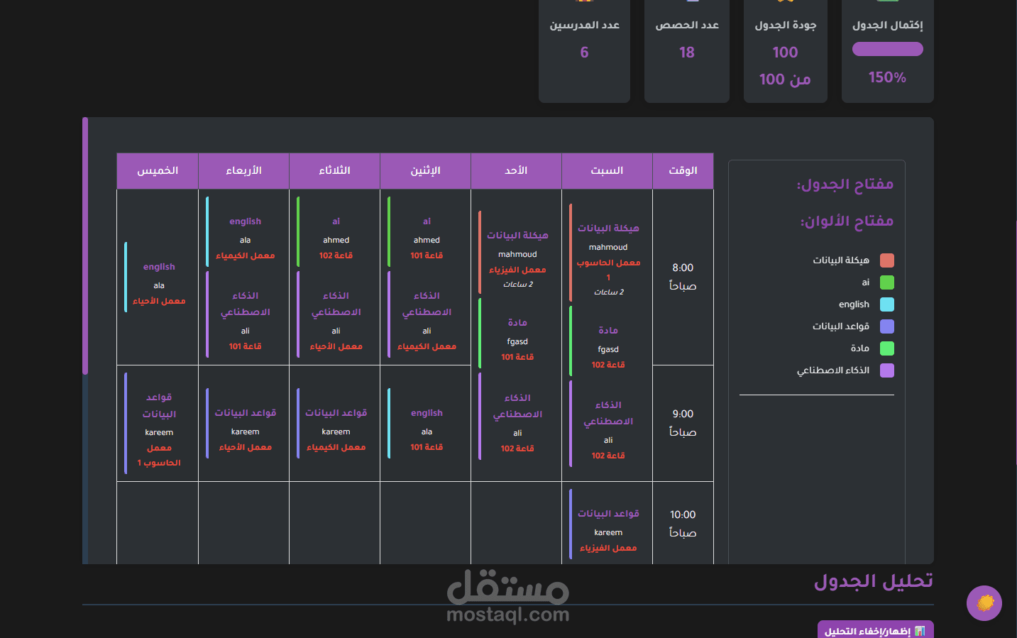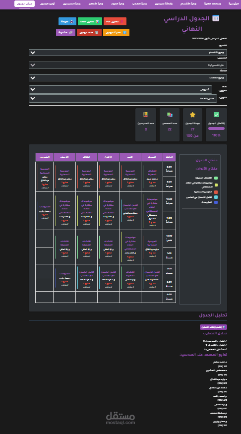 يهدف مشروع Time_Table إلى تطوير نظام منظّم لإدارة الجداول الزمنية، مصمّم لتسهيل عملية إنشاء وتنظيم الجداول الدراسية أو جداول العمل بطريقة واضحة وفعّالة. يساعد النظام المؤسسات التعليمية أو الفرق الإدارية على توزيع الحصص والمهام الزمنية بشكل متوازن ومنظم.
