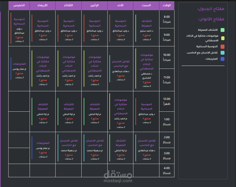 تنظيم المقررات أو المهام حسب الأيام والساعات