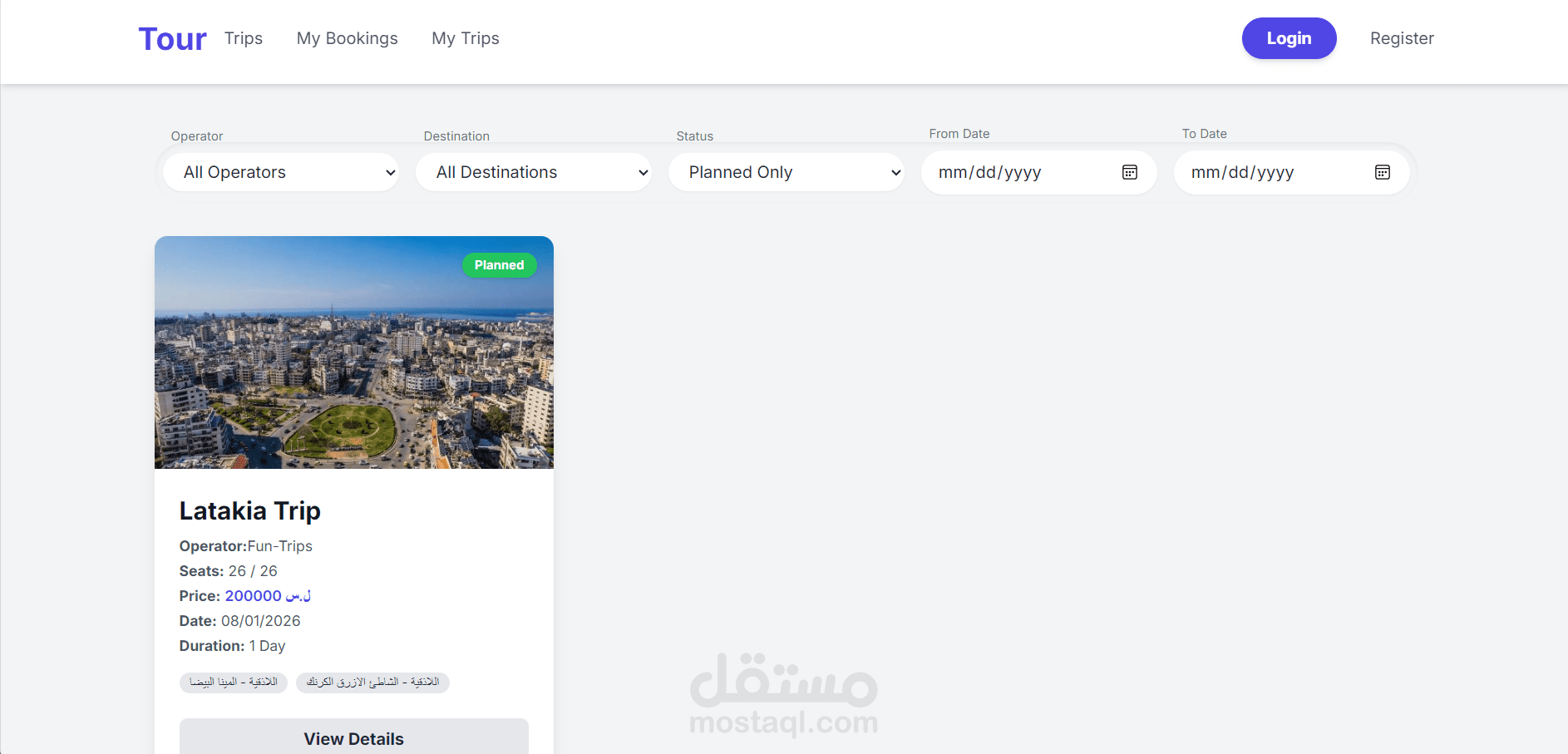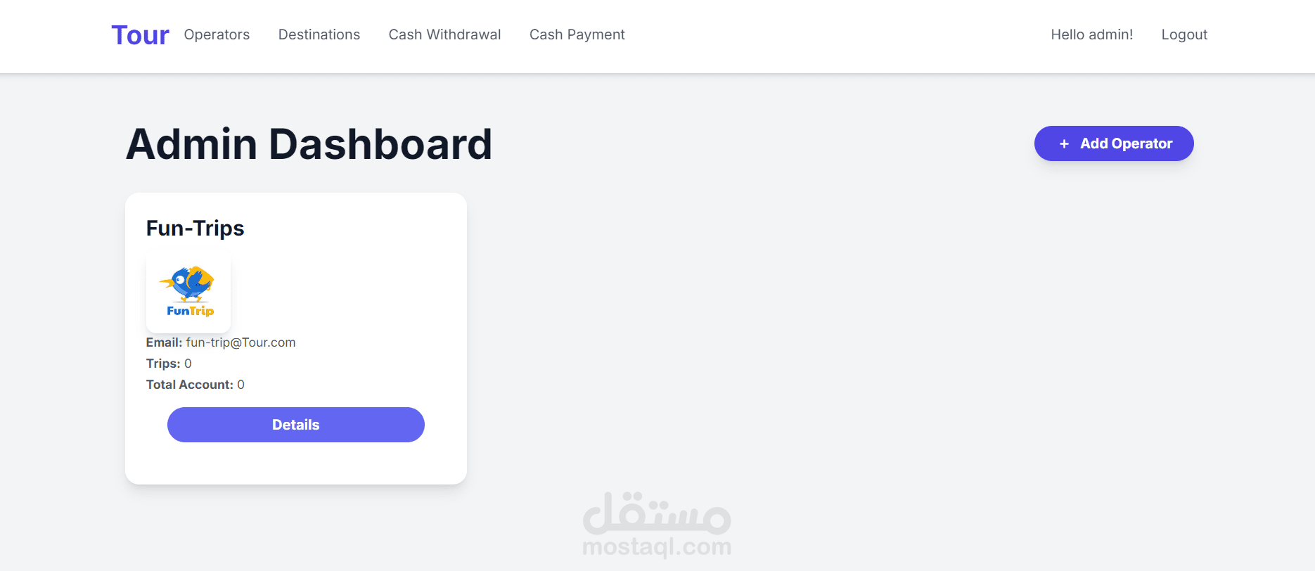 Tour is a high-performance travel management ecosystem featuring a sophisticated tri-level architecture for admins, operators, and end-users. The platform provides a powerful Financial Dashboard for admins to manage operator accounts and oversee "Cash Money" ledgers and platform liquidity. Operators benefit from a dedicated command center to create and handle complex trip actions, itineraries, and passenger logistics. Users enjoy a premium, ultra-fast interface equipped with advanced filtering and a seamless booking-to-payment workflow. Designed with a focus on speed and aesthetic precision, the system ensures a frictionless experience even under heavy data loads. It perfectly balances deep business logic with a user-friendly design philosophy, making it a robust solution for modern tourism scaling.