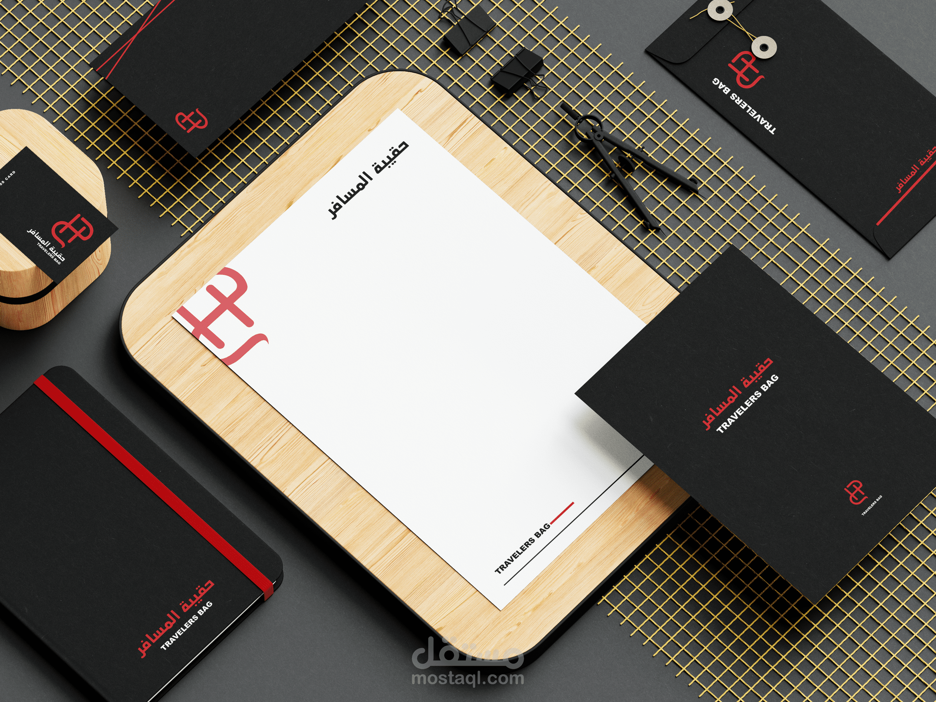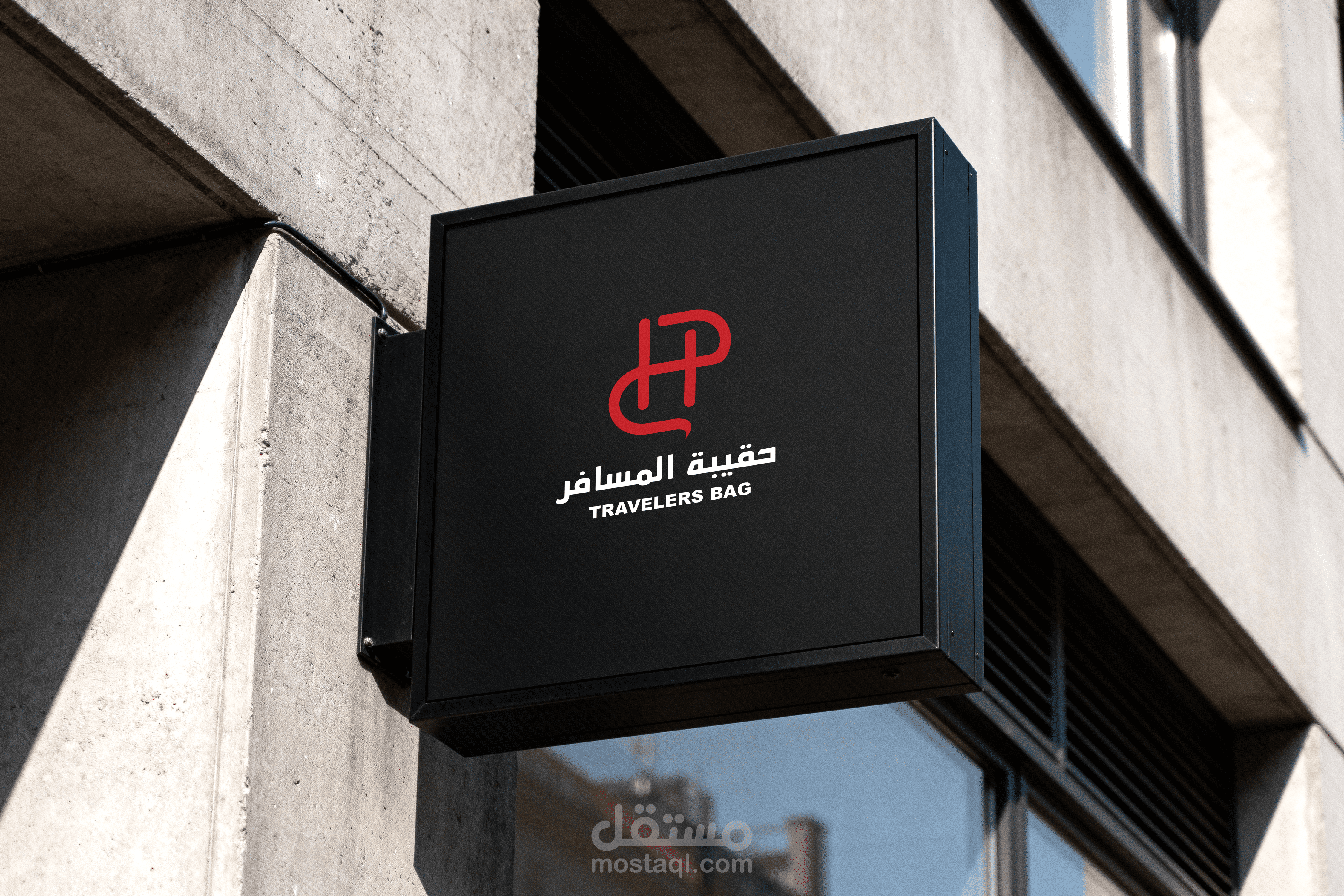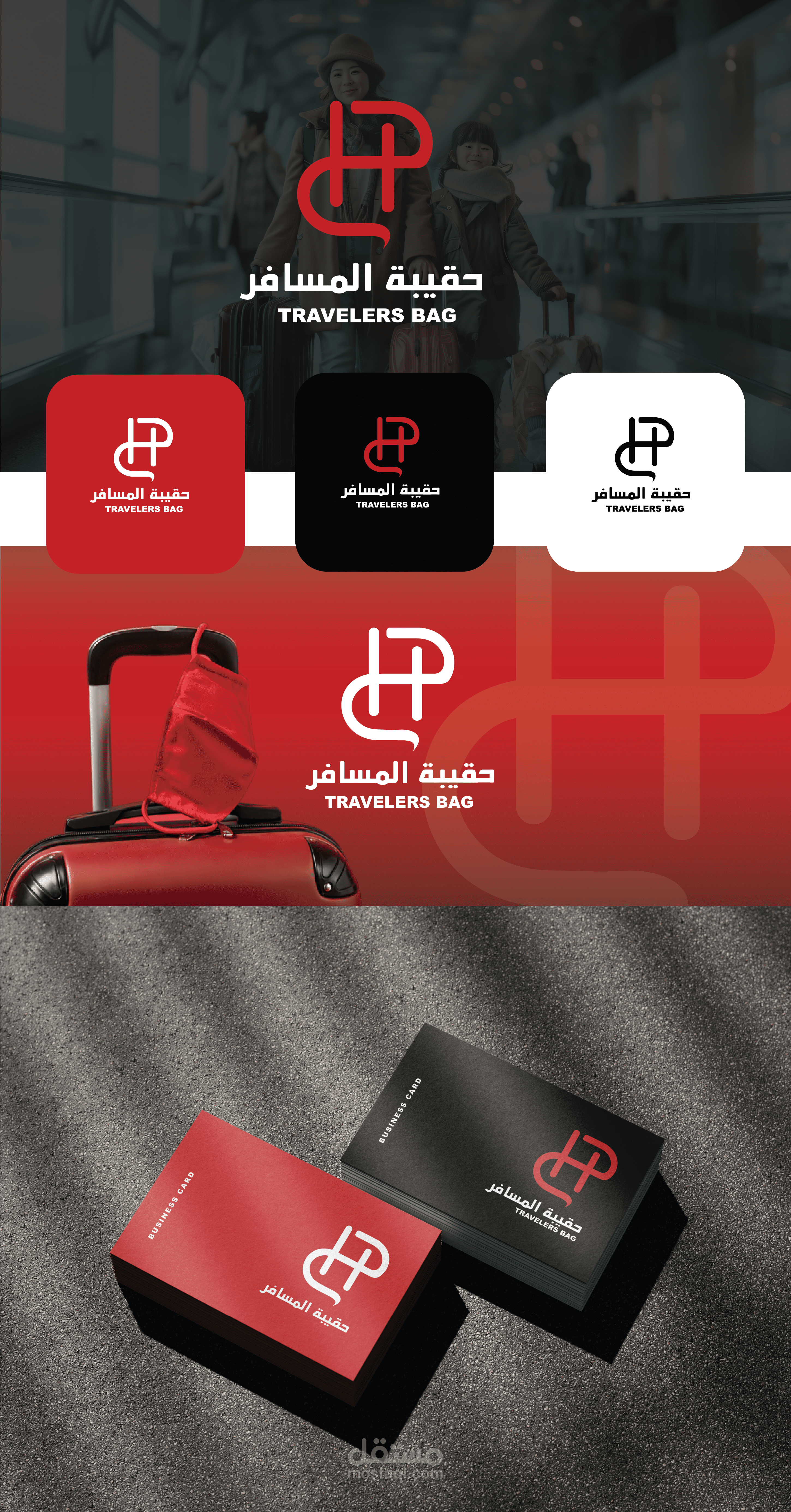 تصميم شعار لمحل بيع حقائب للسفر مع ادخال اللون الاحمر والاسود والابيض فقط فق