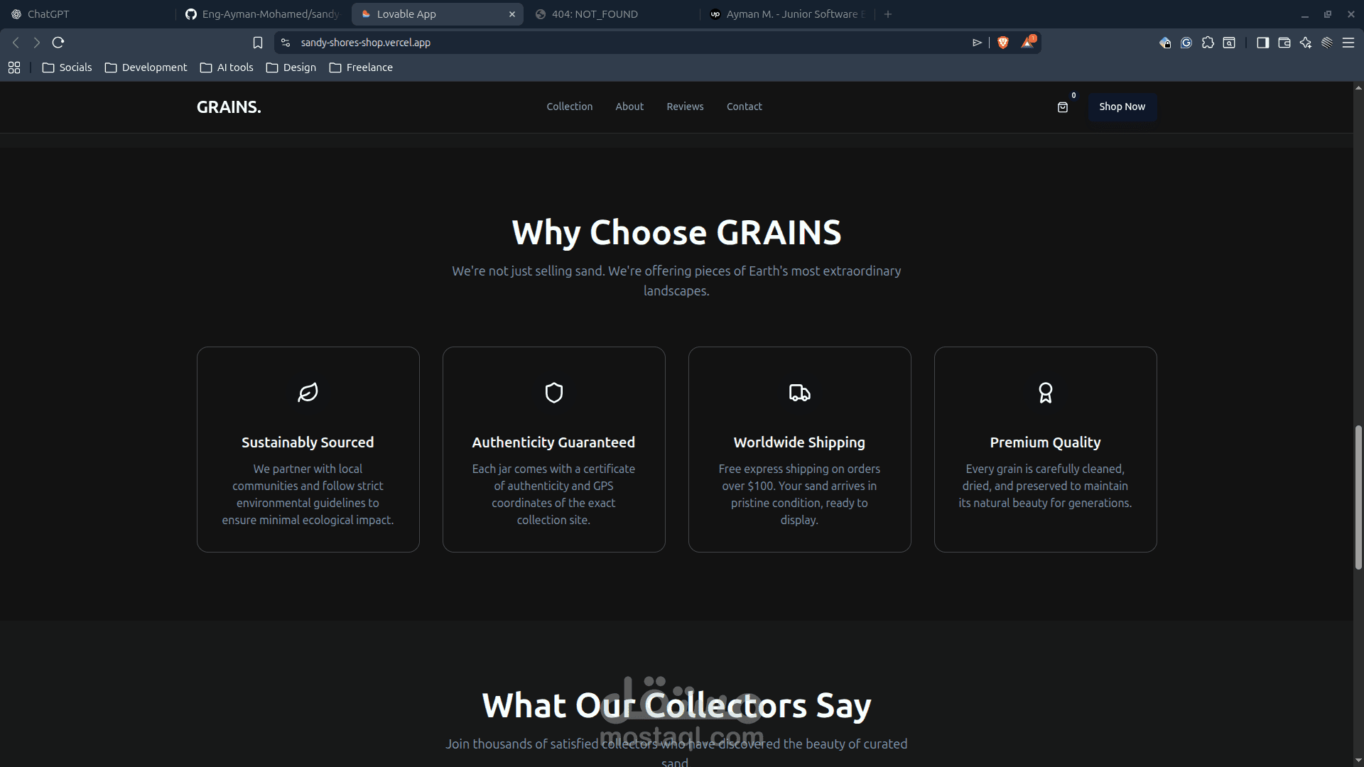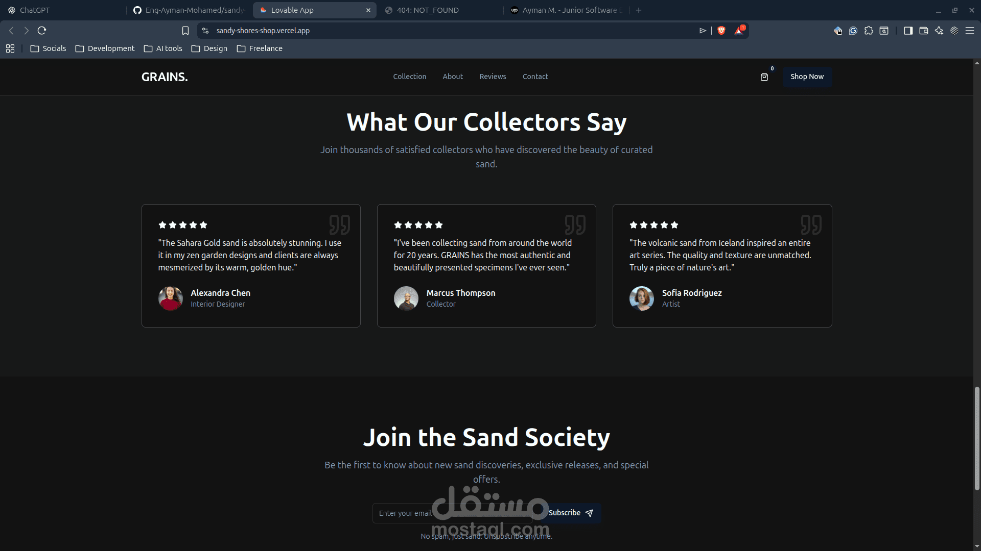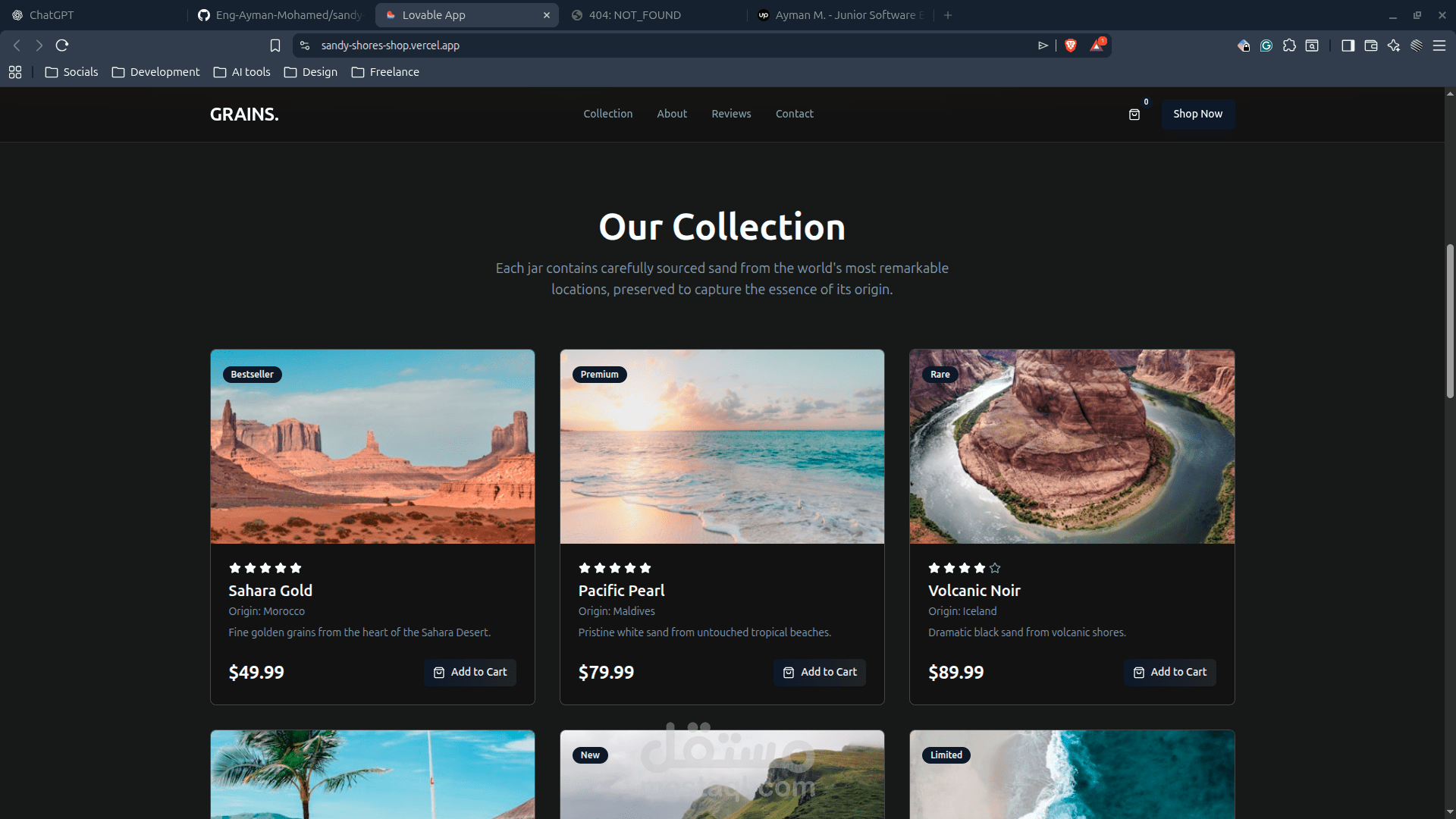 متجر (Sandy Shores Shop) هو تطبيق ويب حديث للتجارة الإلكترونية تم تطويره لعرض مهارات تطوير الواجهات الأمامية (Frontend) وأفضل الممارسات البرمجية.
