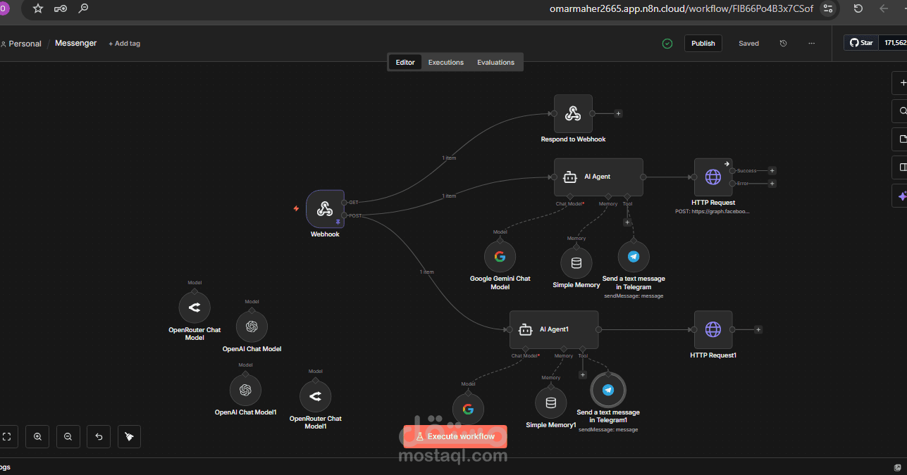 قمت بتصميم وتنفيذ Workflow ذكي لإدارة محادثات Facebook Messenger تلقائيًا باستخدام تقنيات AI Automation، يهدف إلى تحسين سرعة الرد على العملاء، تنظيم الطلبات، وتقليل التدخل البشري مع الحفاظ على تجربة تواصل احترافية وإنسانية.