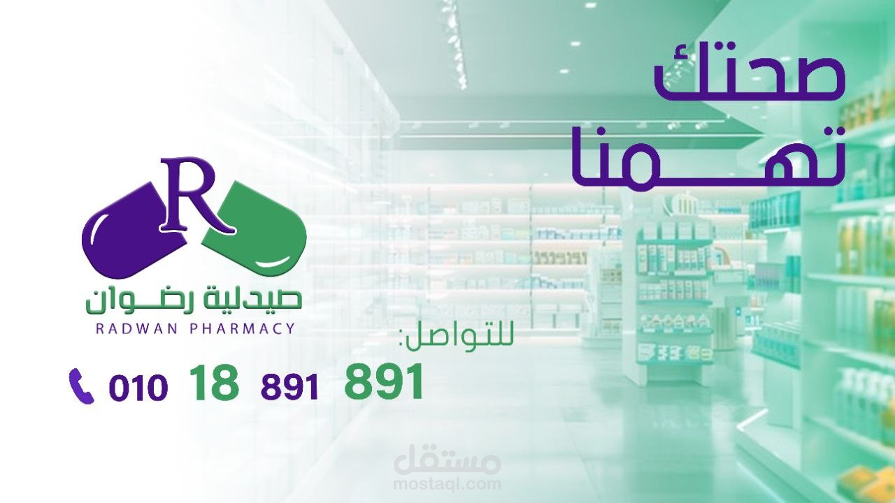 يعتمد لوجو صيدلية رضوان – Radwan Pharmacy على تصميم عصري وبسيط يعكس الثقة والاحتراف في المجال الصيدلي.