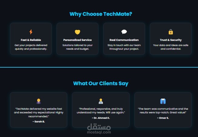 TechMate هي منصة ويب حديثة تم تطويرها بالكامل من الصفر، تهدف إلى تقديم تجربة استخدام ذكية وسلسة تعتمد على إدارة المستخدم، التخصيص، والأداء العالي، مع التركيز على المرونة وقابلية التوسع مستقبلًا.