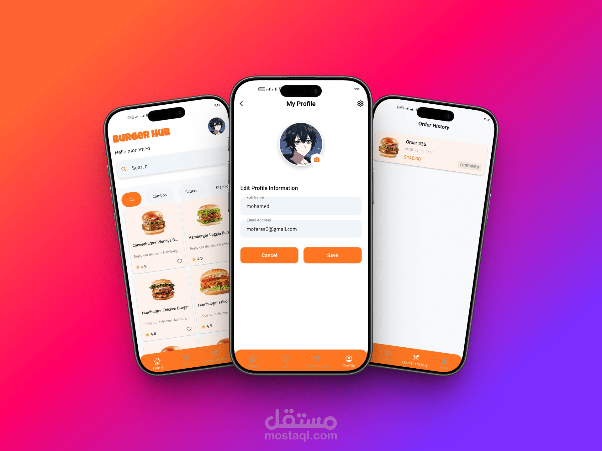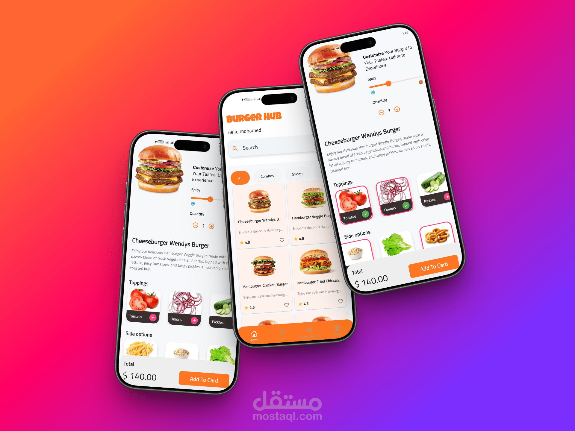 تطبيق Burger Hub هو تطبيق طلب طعام
