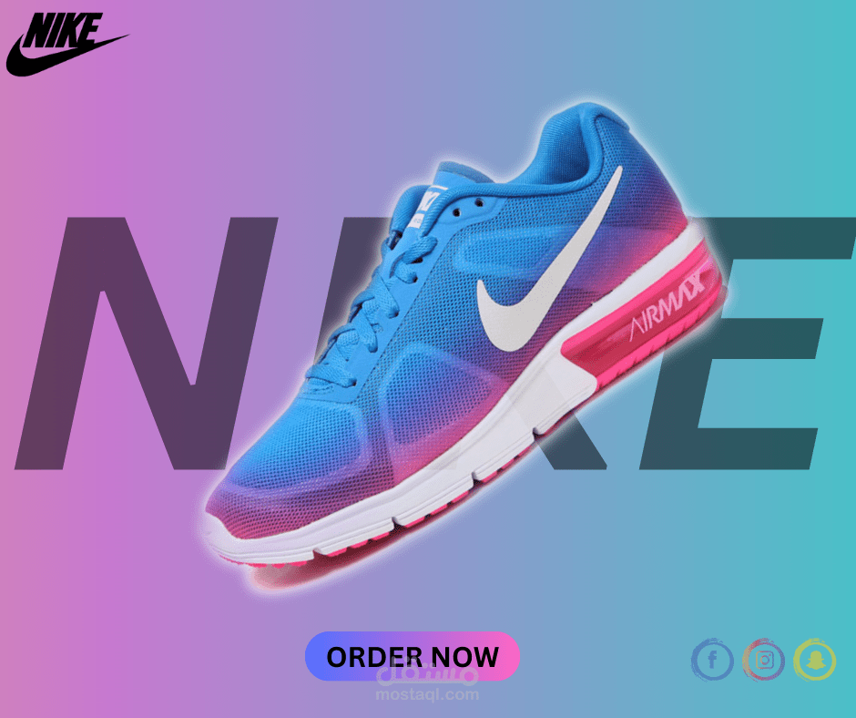 الإخراج الفني للنصوص: استخدام نصوص ضخمة خلف المنتج (مثل كلمة NIKE أو COFFEE) لإضفاء عمق بصري (Depth) وجعل التصميم يبدو عصرياً.