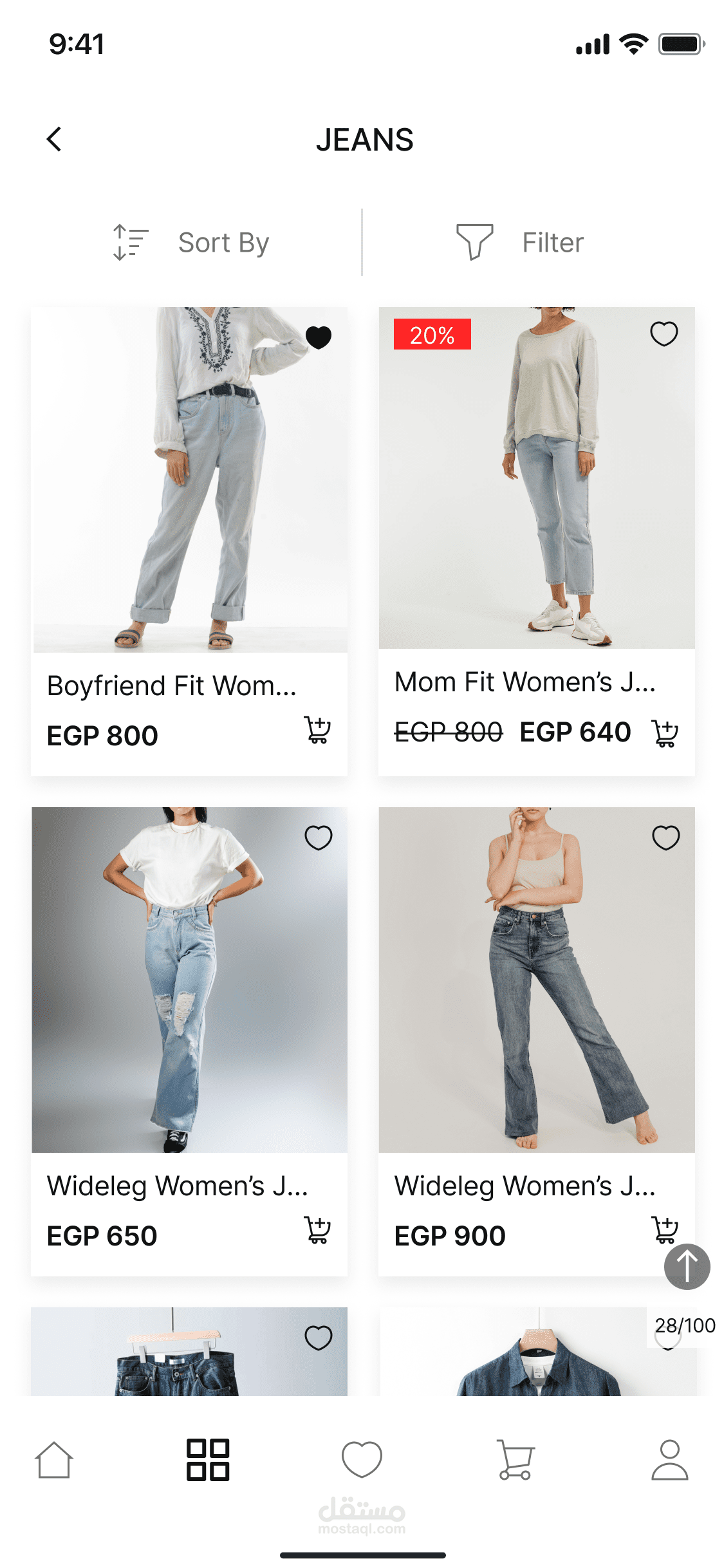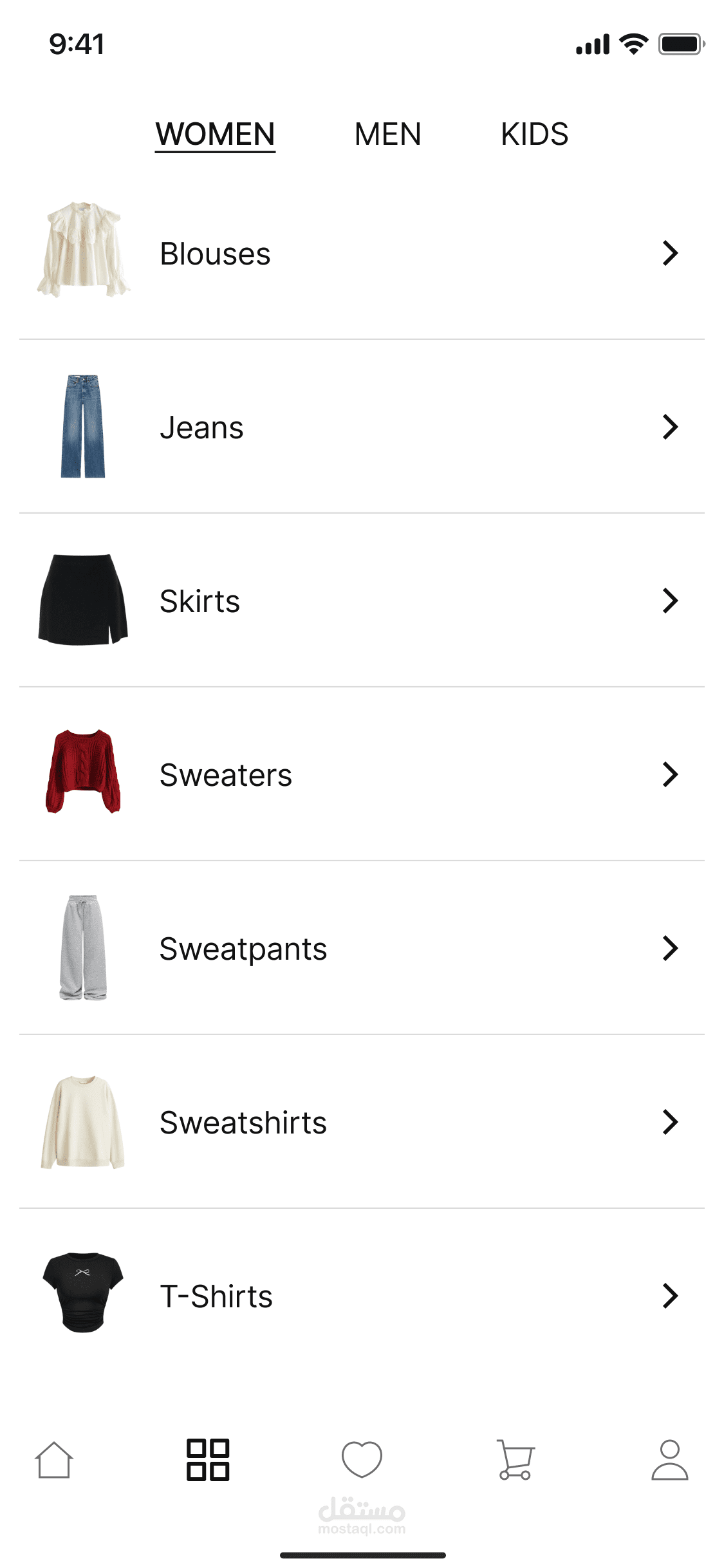 تصميم واجهة تركز على المنتج: استخدام مساحات بيضاء وتوزيع ذكي للعناصر لإبراز صور الملابس وجعلها محور اهتمام المستخدم.