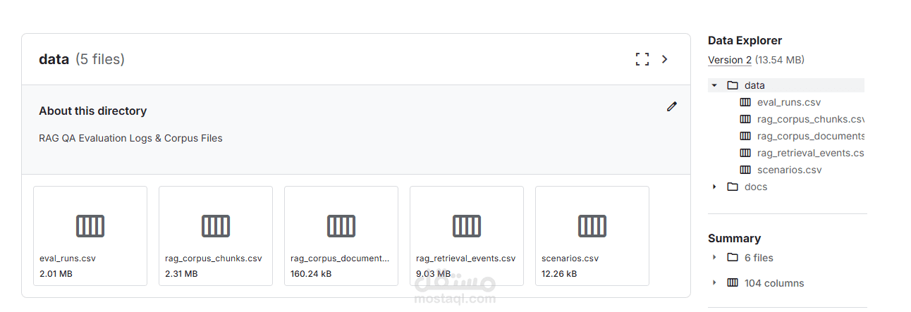 نشرت Dataset على Kaggle موجهة لتقييم أنظمة RAG بشكل عملي: سجلات أسئلة/إجابات + corpus لاختبار جودة الاسترجاع وجودة الإجابة (groundedness/answer quality).