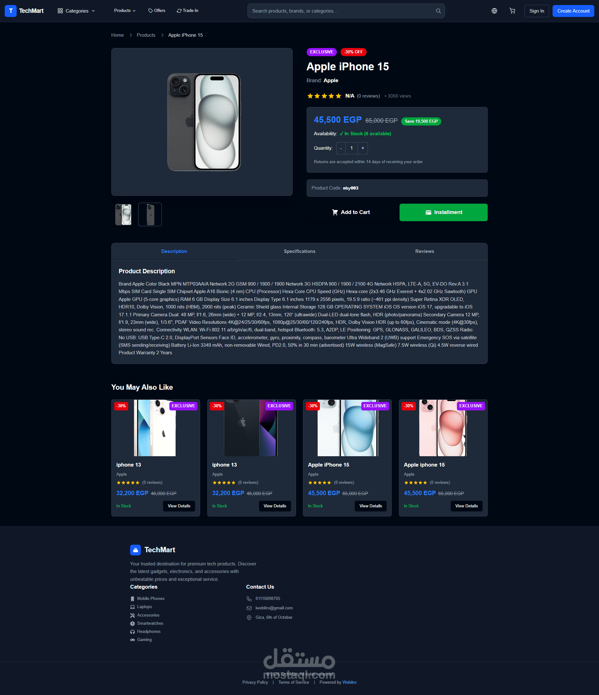 أبرز المميزات: تسوق آمن: دمج نظام سلة مشتريات ودفع قوي يضمن أمان العمليات المالية. تحكم في المخزون: لوحة تحكم إدارية مخصصة لمتابعة المنتجات وإدارة الطلبات بشكل فوري. الأداء: تحسين كامل للموقع لضمان سرعة عرض الصور عالية الجودة واستجابة تامة مع شاشات الجوال.