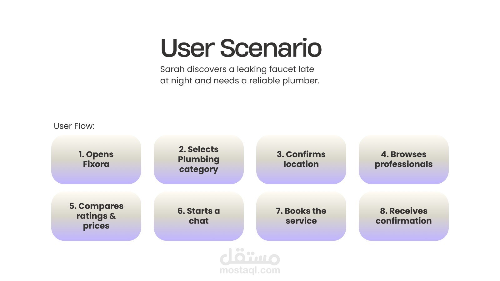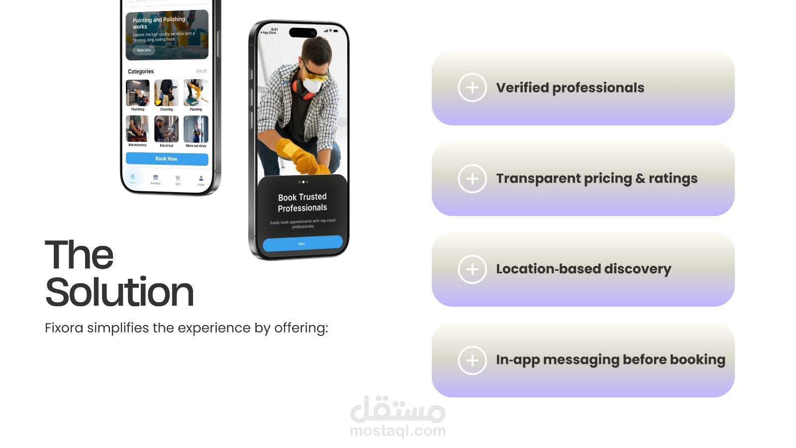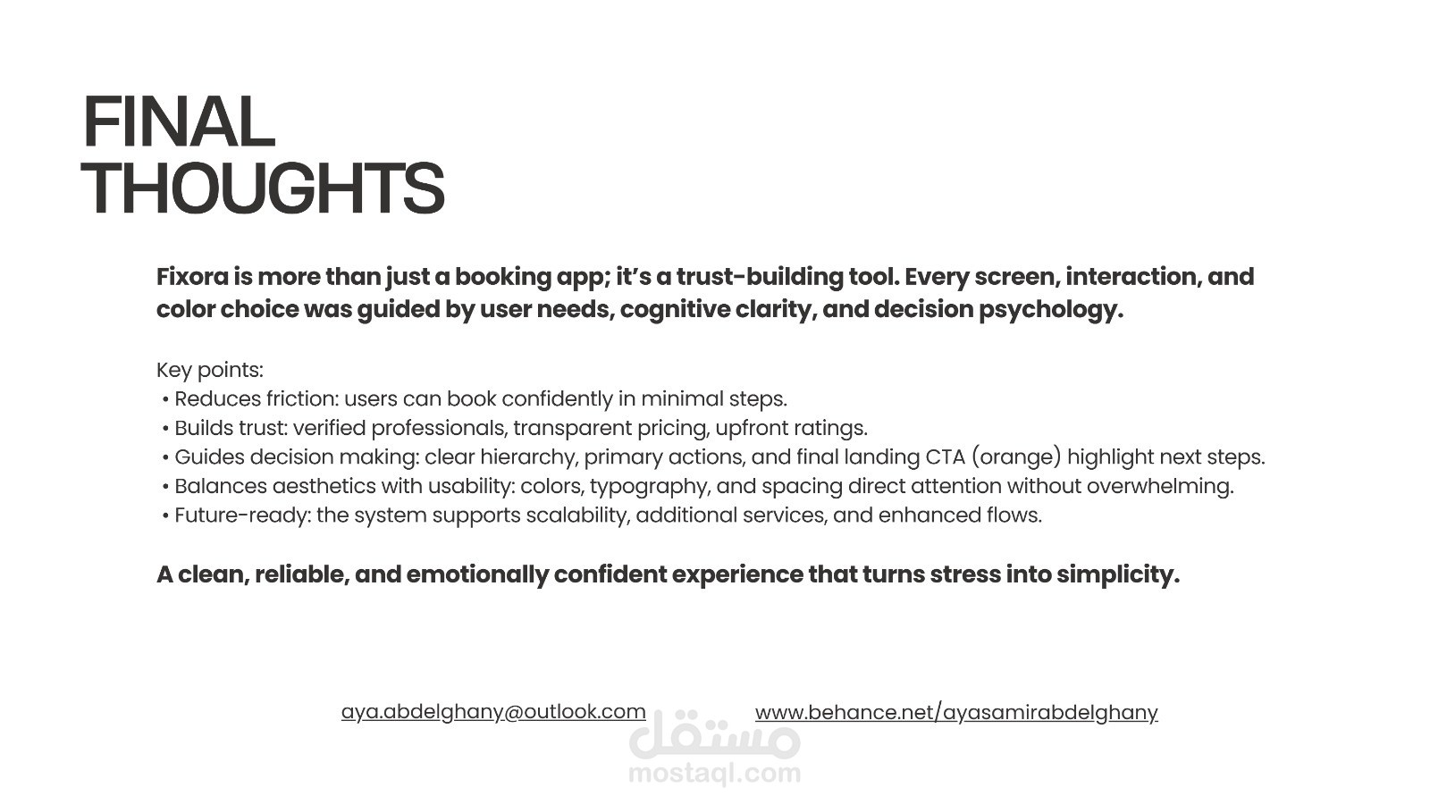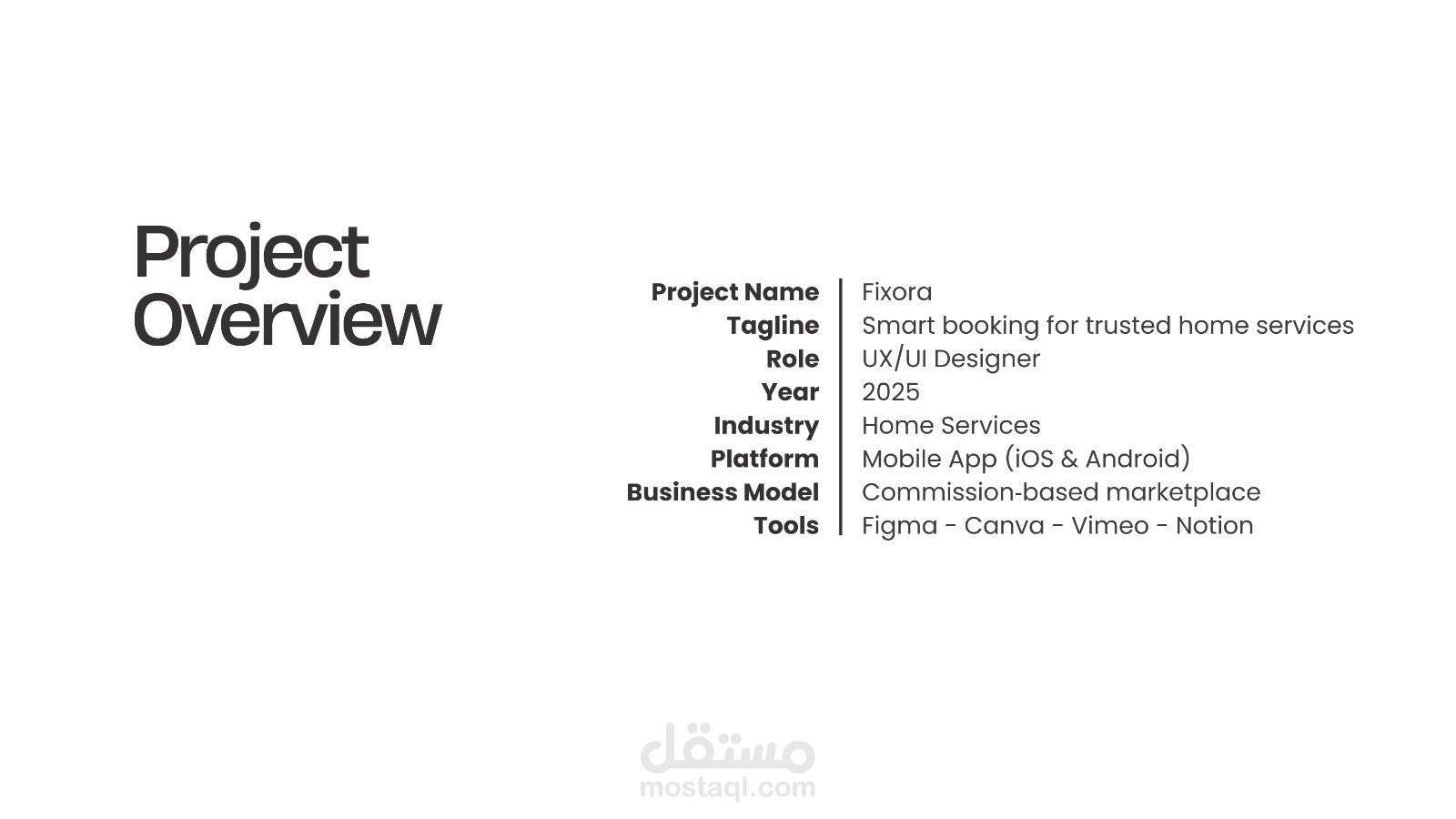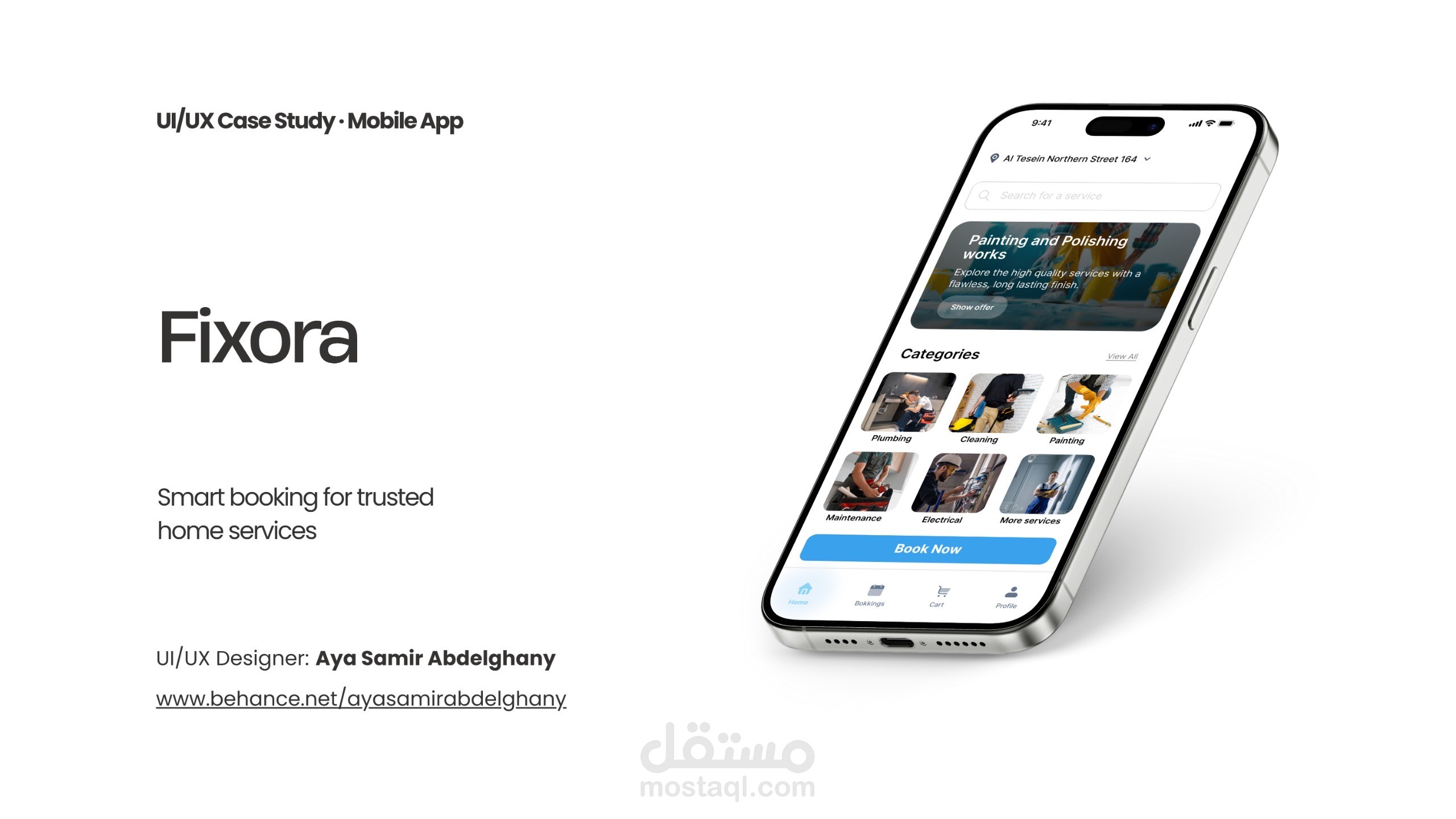 Fixora is a mobile application designed to simplify the process of booking trusted home service professionals. The project focuses on reducing user friction, building trust through transparency, and guiding users toward confident booking decisions using clear UX flows, visual hierarchy, and a calm, blue-focused design system.