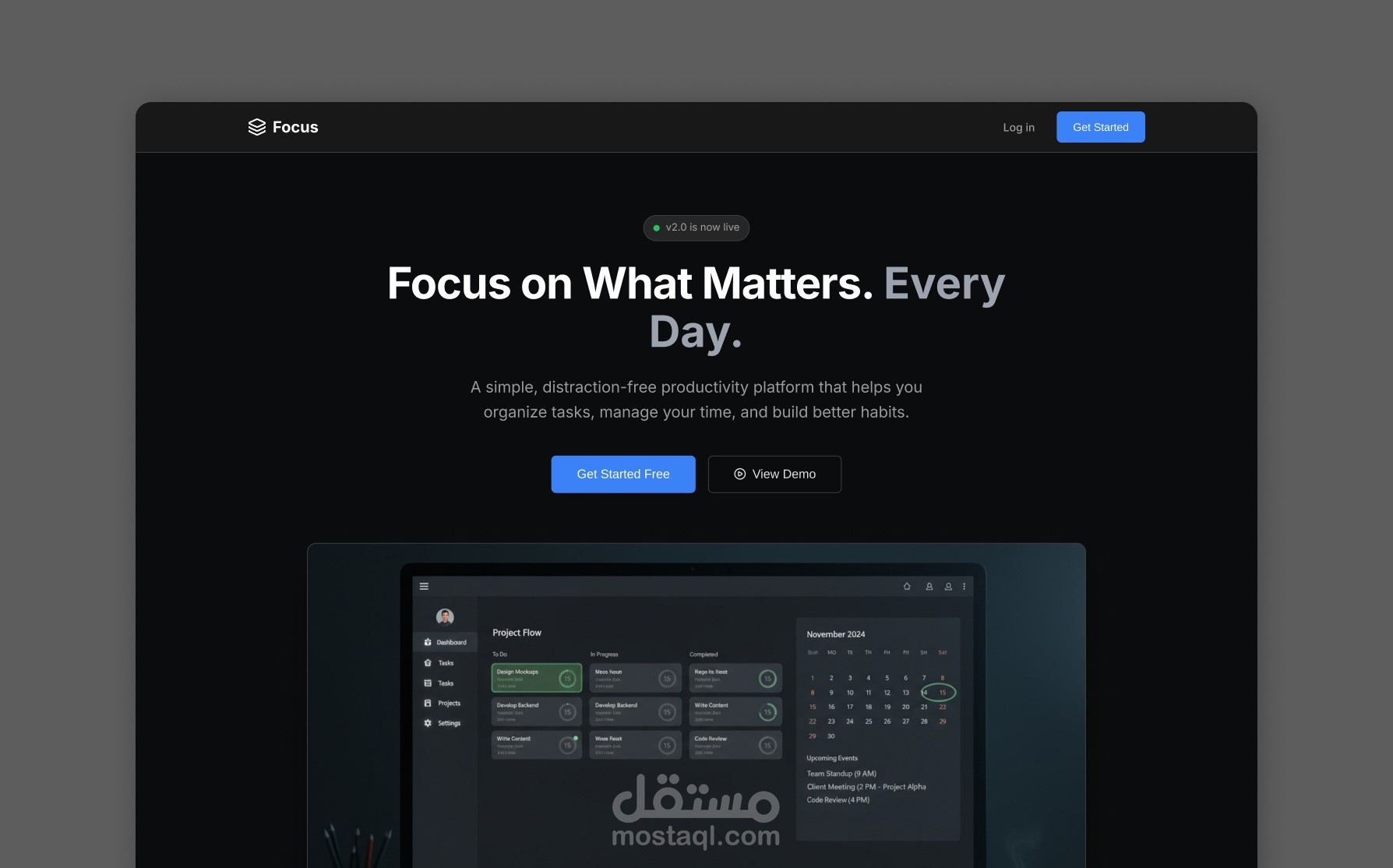 Focus هي منصة إنتاجية عبر الإنترنت مصممة لمساعدة الأفراد والفرق الصغيرة على تنظيم مهامهم، وتخطيط يومهم، والحفاظ على تركيزهم. يركز المنتج على الوضوح والبساطة ودعم العمل العميق، مما يُمكّن المستخدمين من زيادة إنتاجيتهم اليومية دون الشعور بالإرهاق.