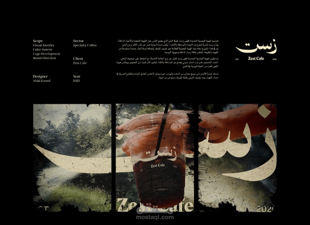 مشروع إعادة تصميم الهوية البصرية لمقهى زست | مقهى مختص متخصص في القهوة المختصة.
