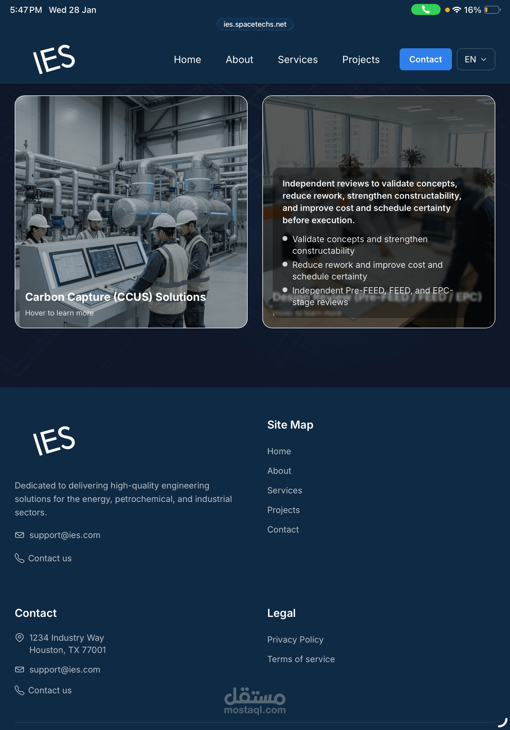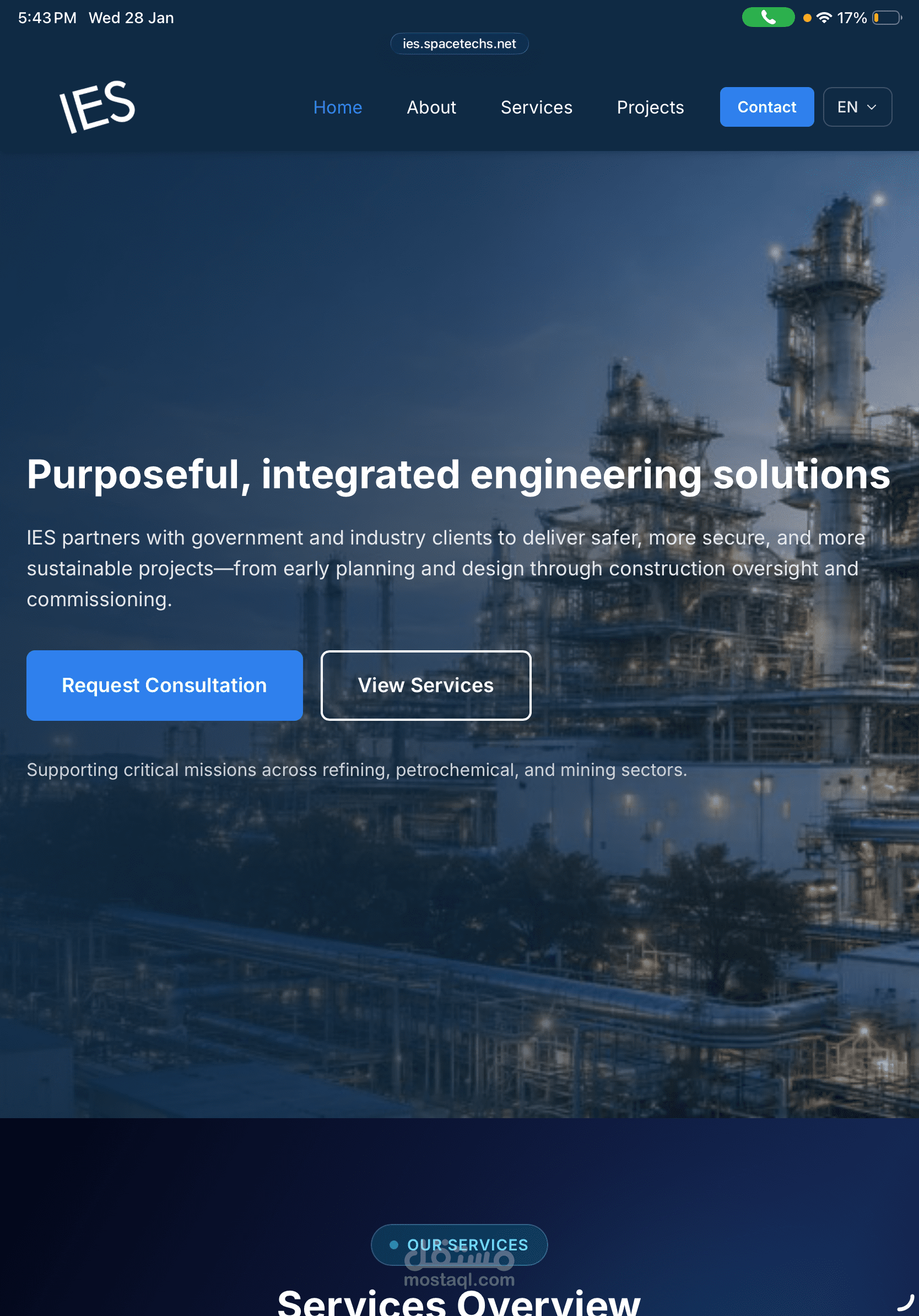 ركزنا بشكل كبير على تجربة المستخدم، بحيث تكون المنصة سريعة، واضحة، ومتوافقة مع جميع الأجهزة، سواء كمبيوتر أو جوال أو تابلت، مع تصميم عصري يسهّل على المستخدم الوصول لكل الخدمات والخدمات الهندسية المرتبطة بأعماله اليومية.