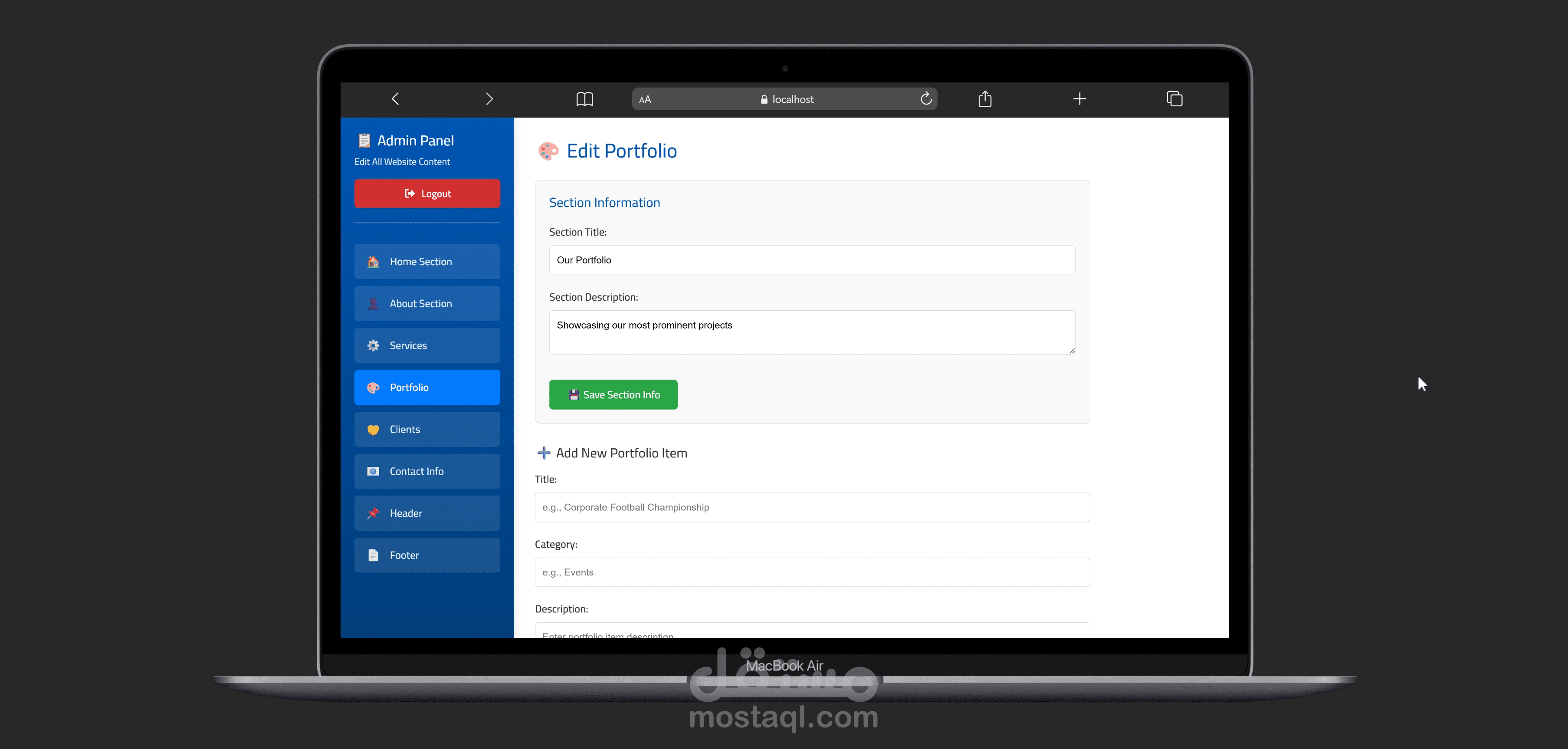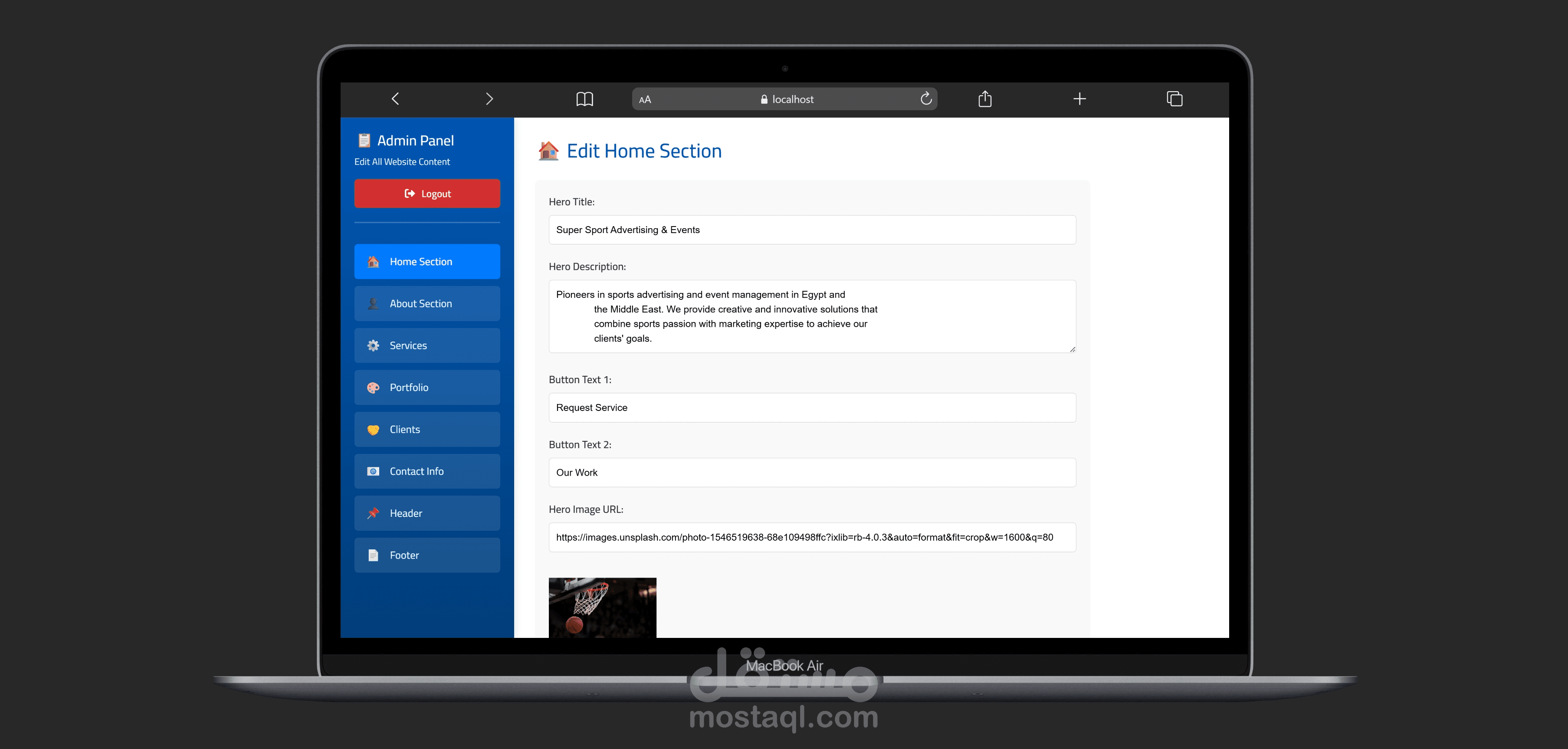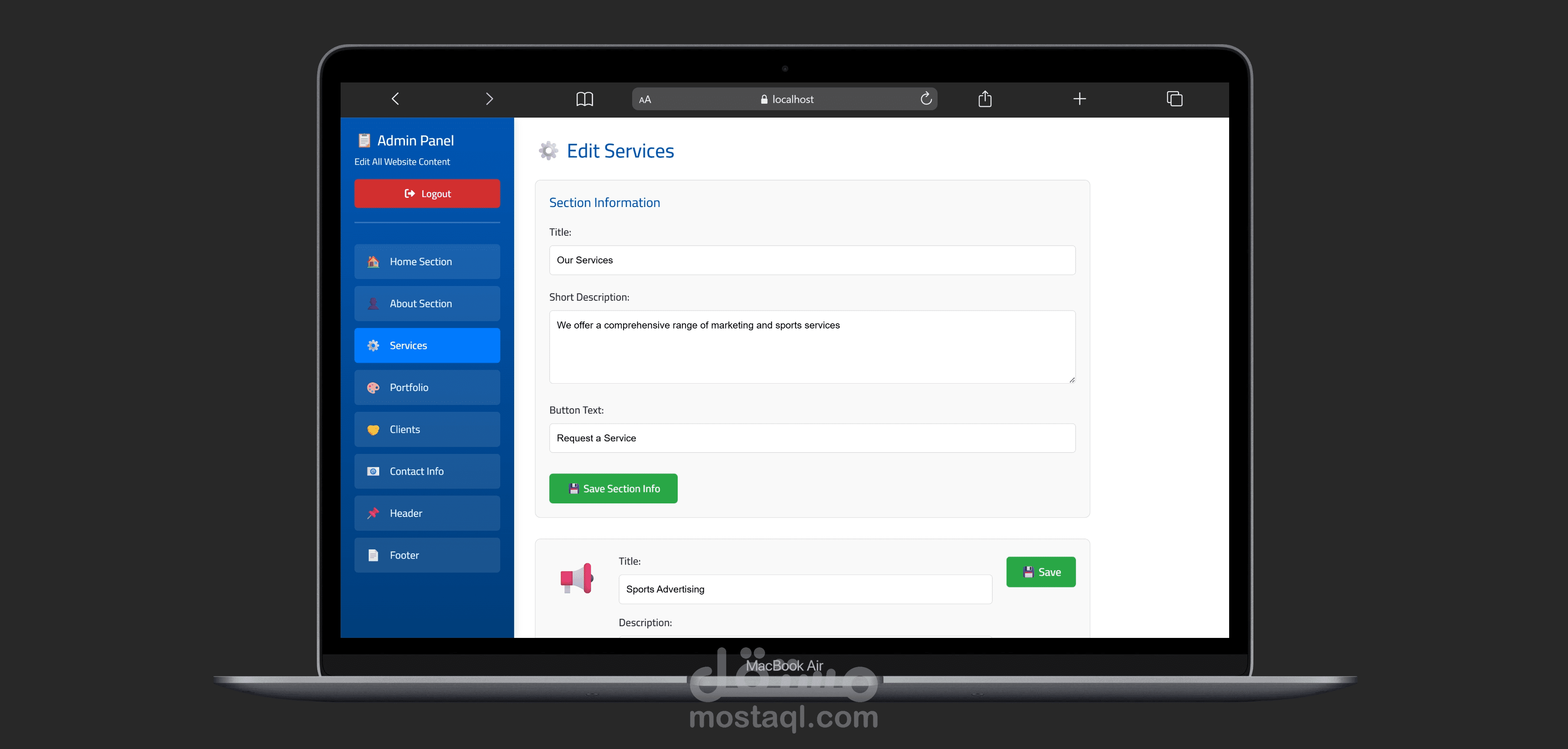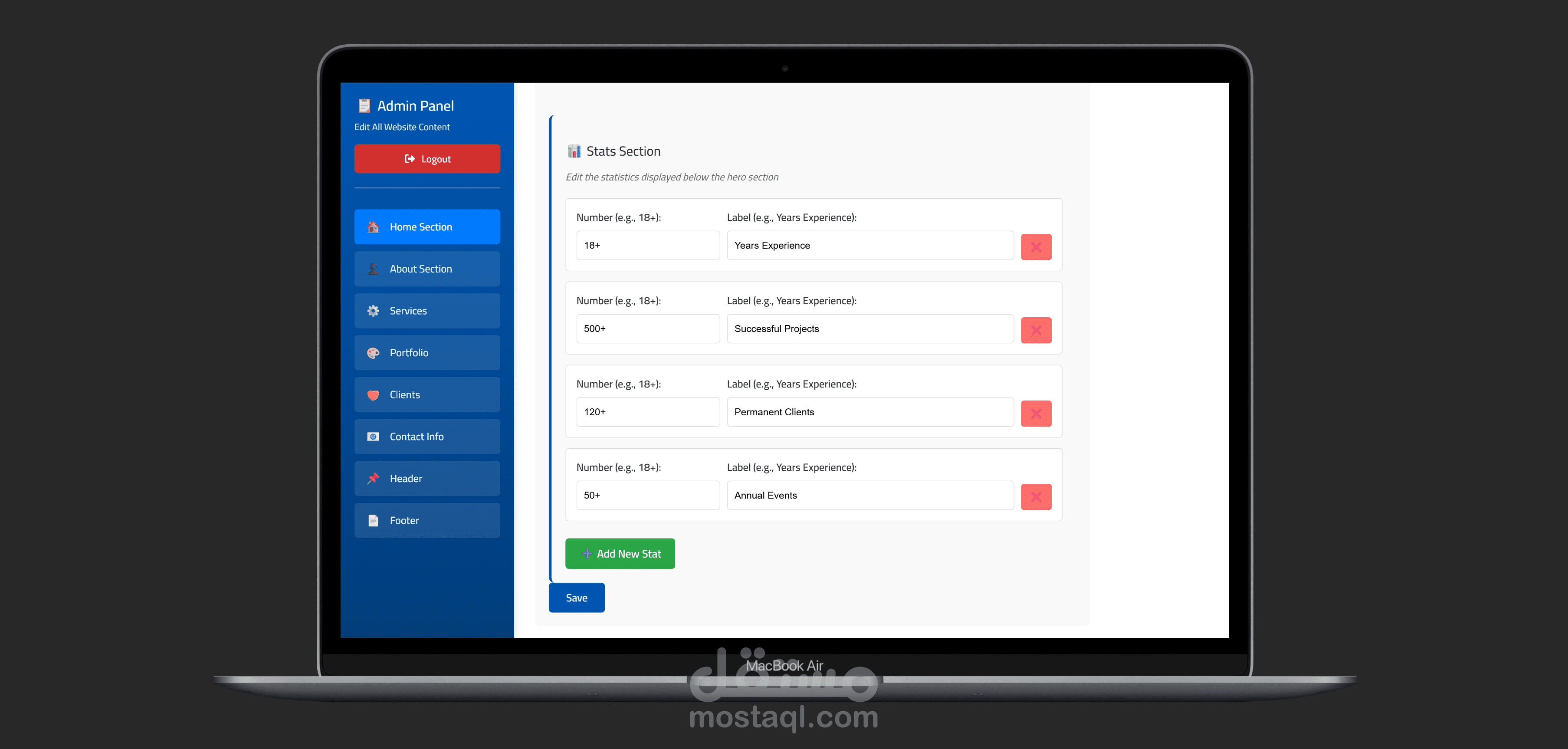 المشروع ده هو أول مشروع فريلانس ليا كـ Full-Stack Developer وتم تنفيذه من البداية للنهاية (Frontend + Backend).