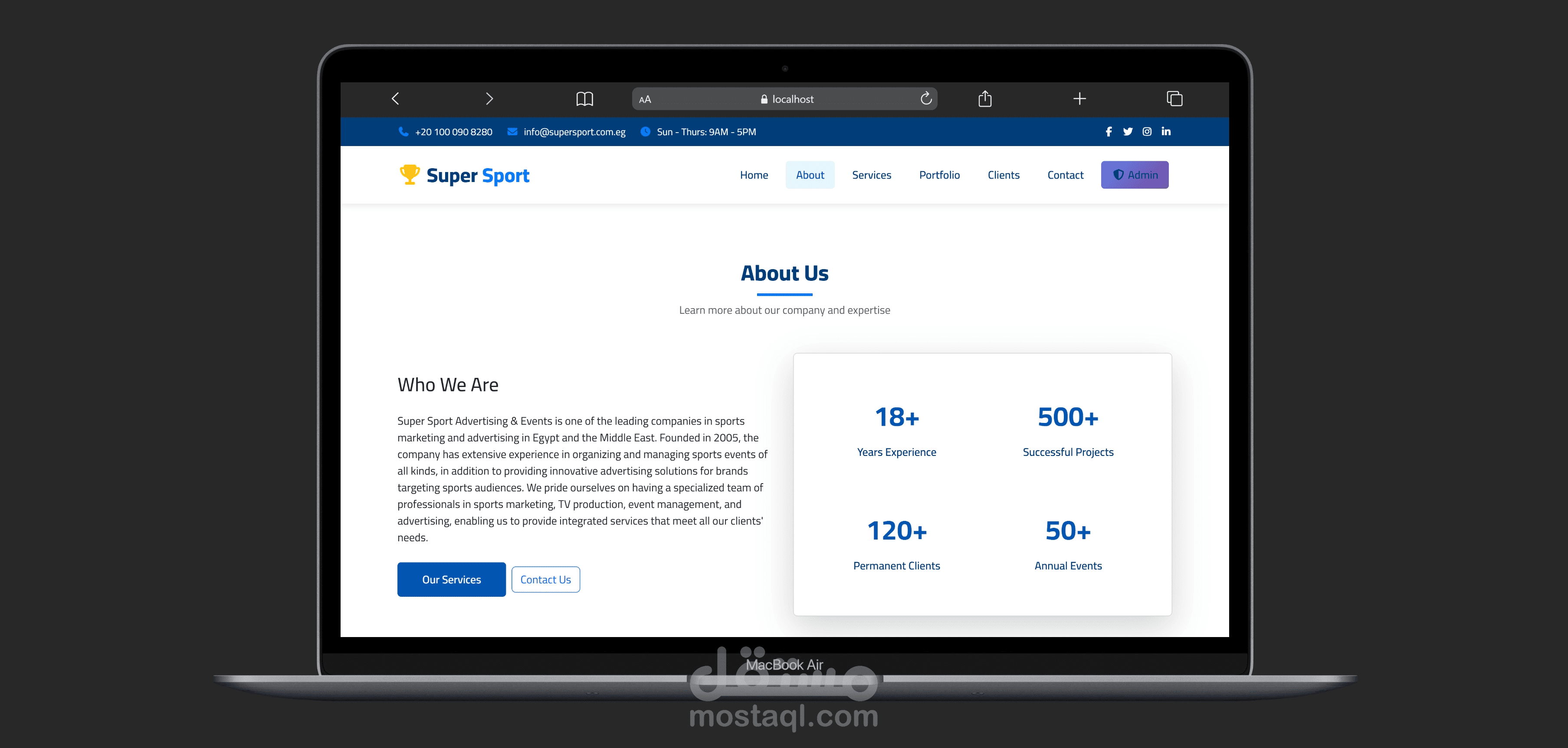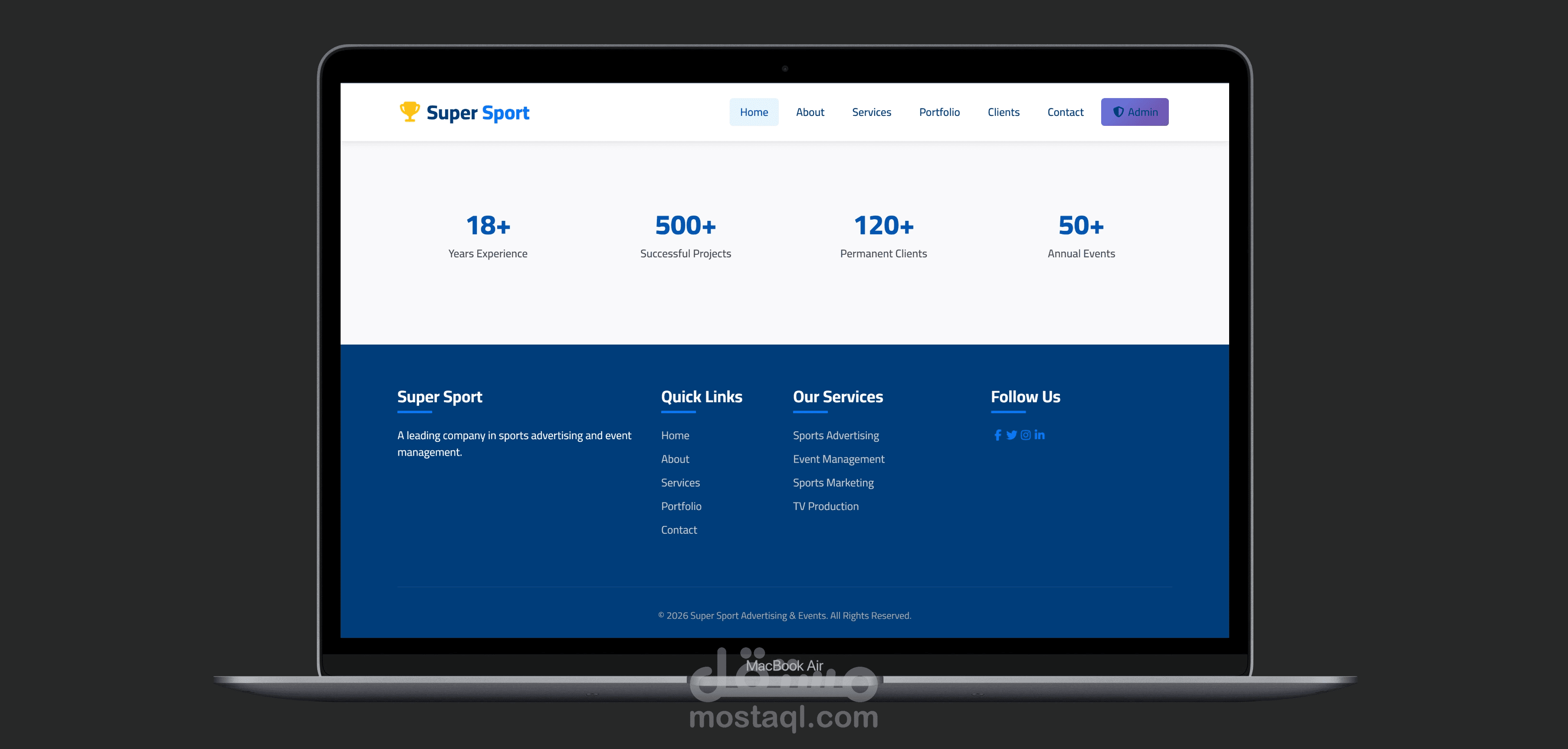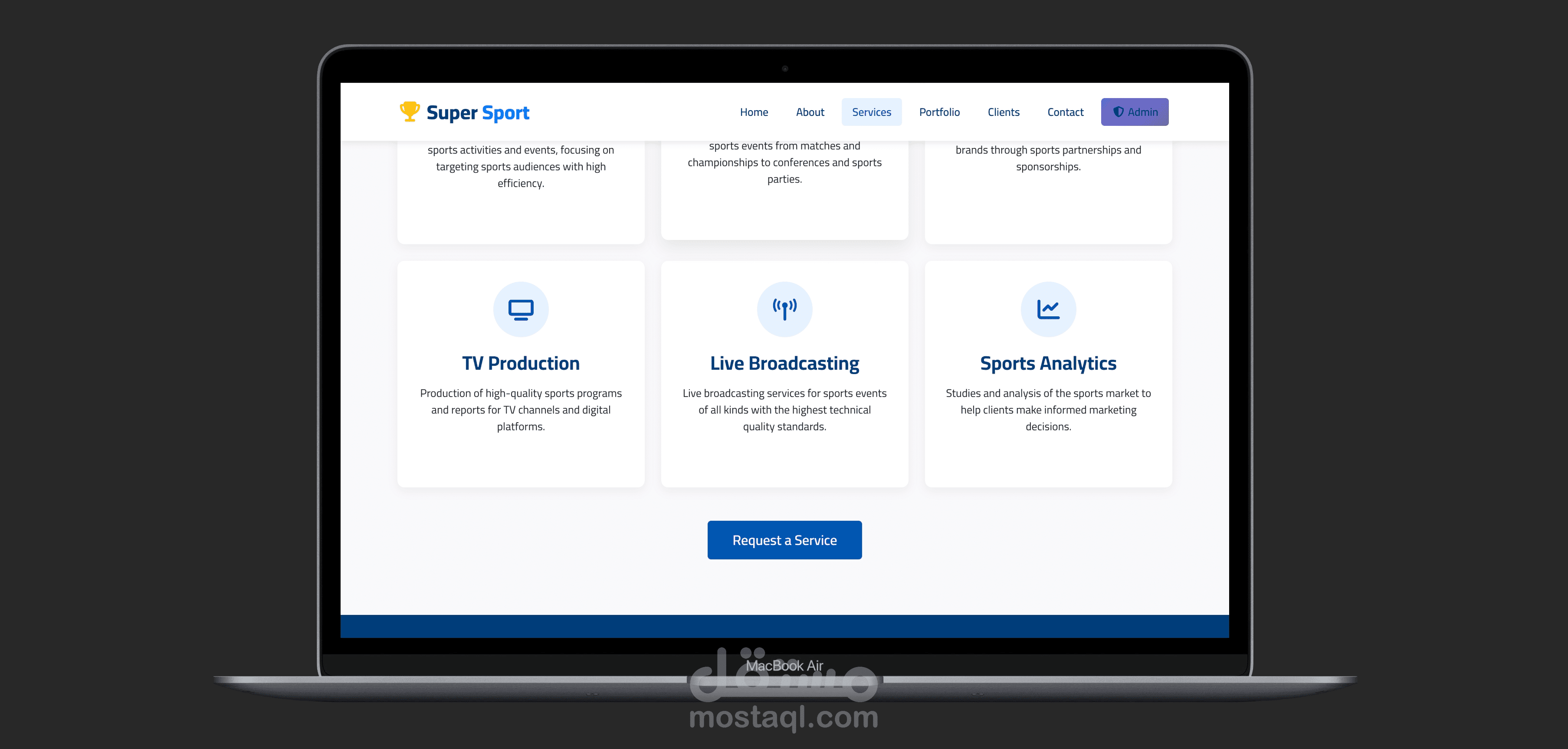 موقع بورتفوليو احترافي تم تطويره خصيصًا لشركة SuperSport لعرض الخدمات، المشاريع، والعملاء بشكل عصري واحترافي.