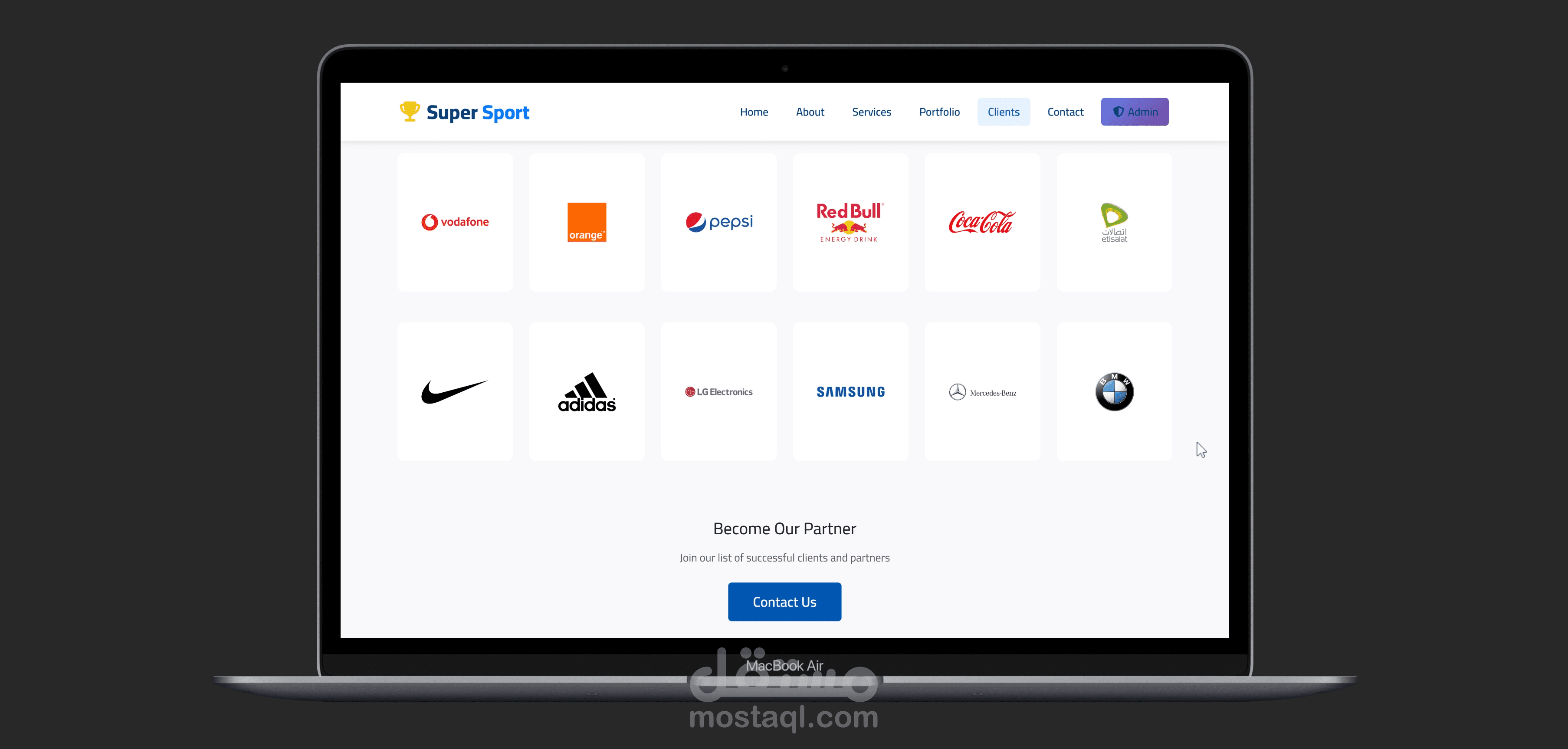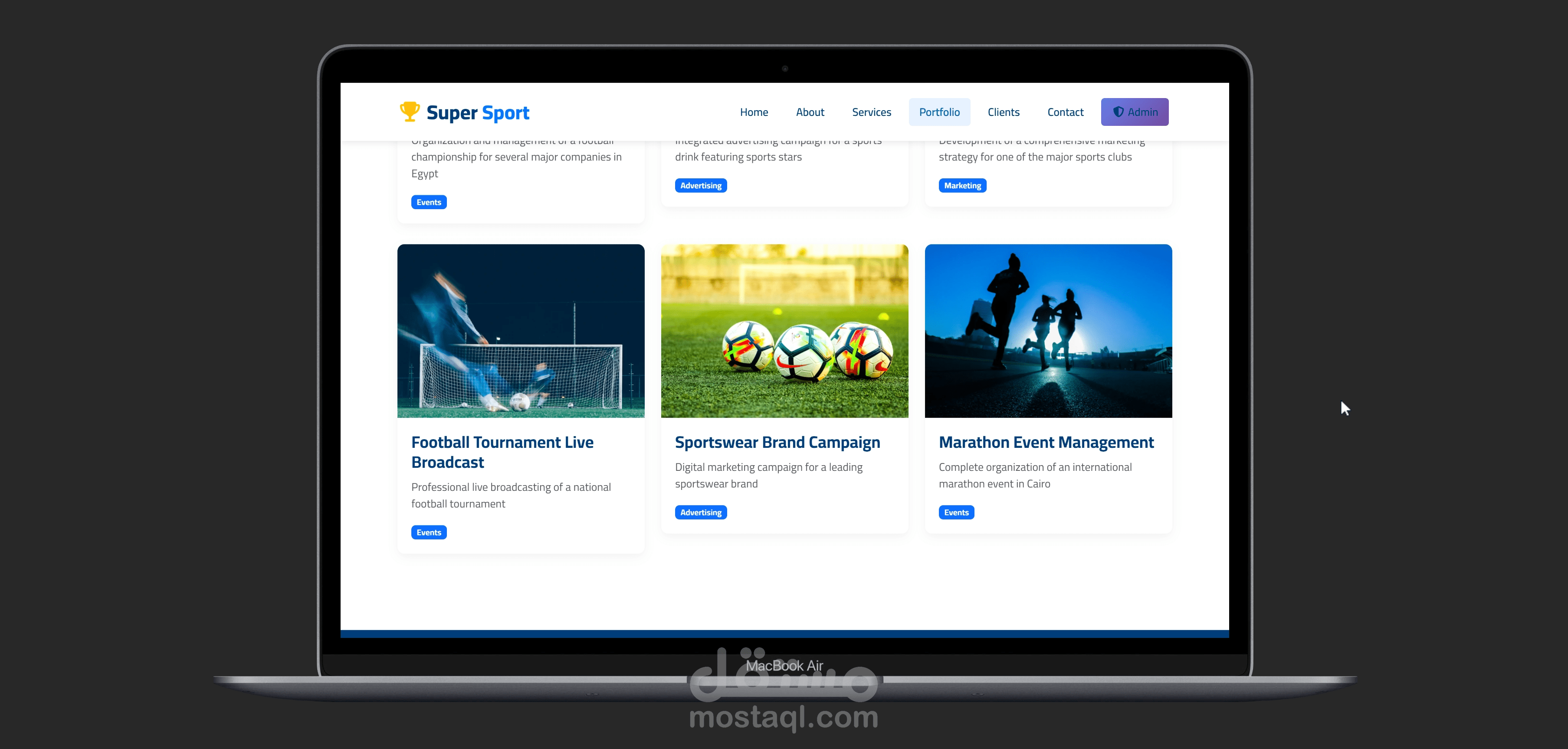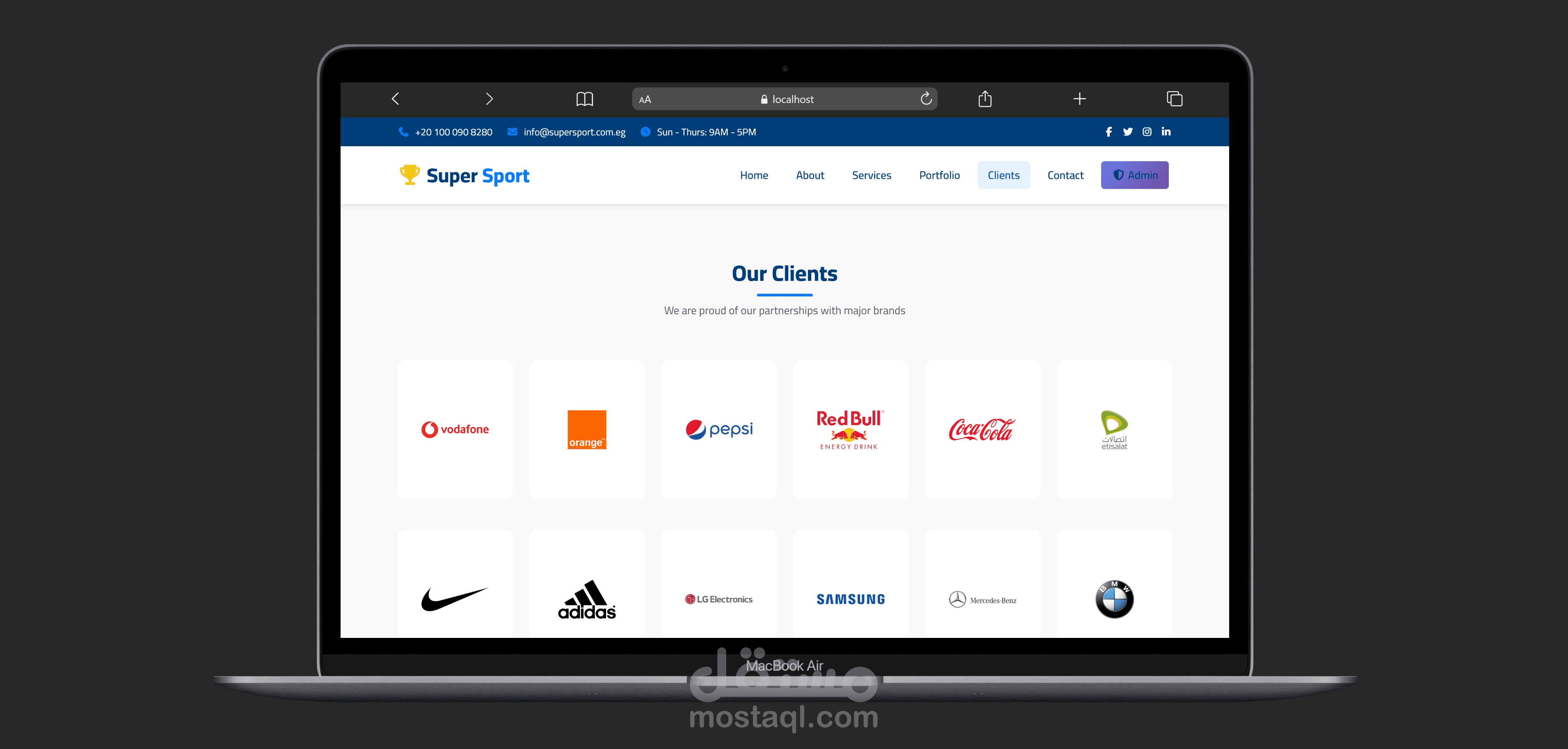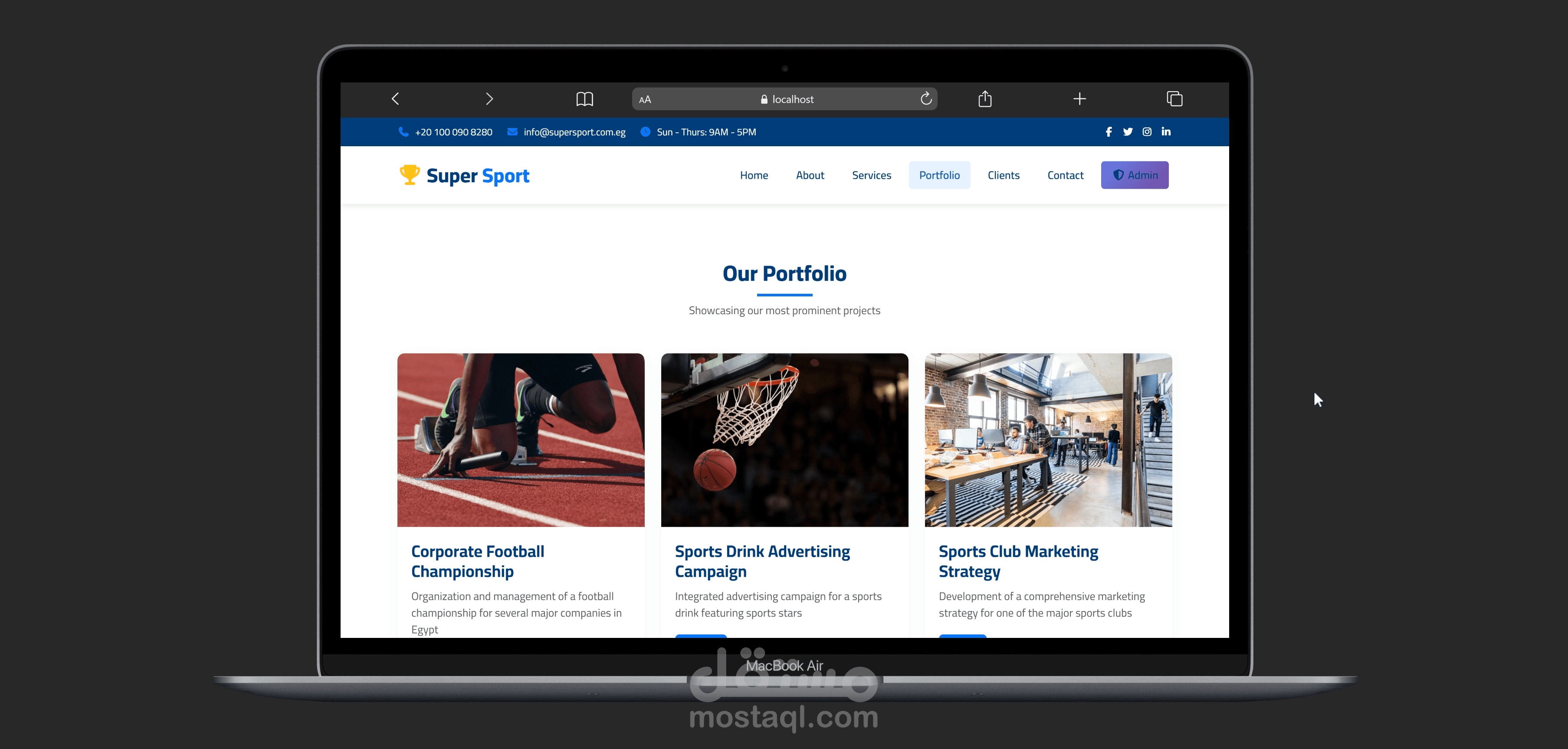 موقع بورتفوليو احترافي تم تطويره خصيصًا لشركة SuperSport لعرض الخدمات، المشاريع، والعملاء بشكل عصري واحترافي.