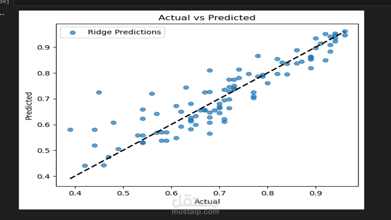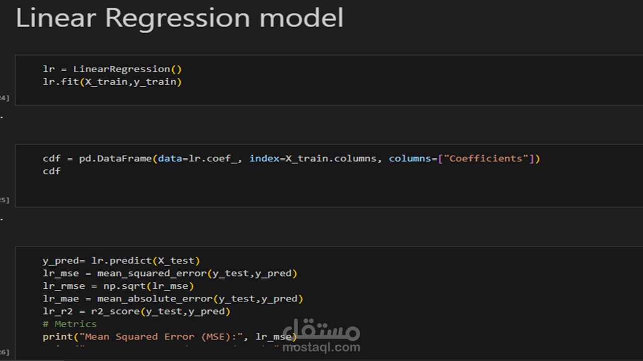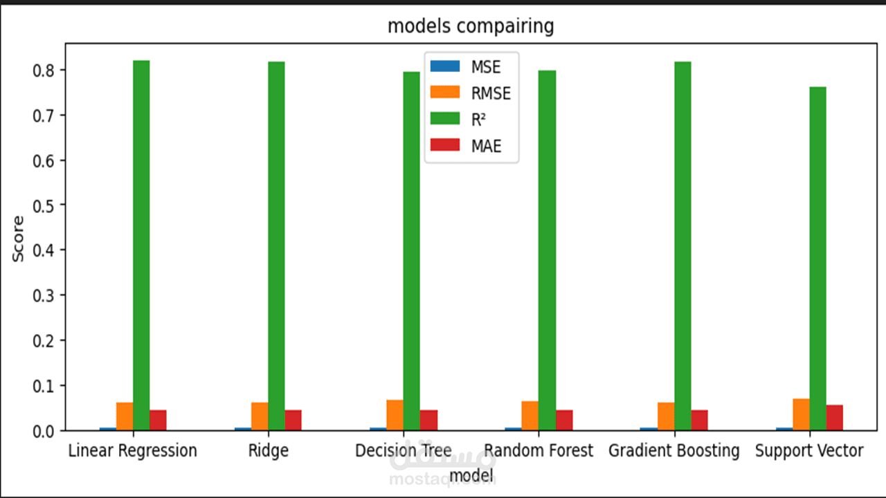 - مقاييس الأداء: R2 Score, MSE, MAE