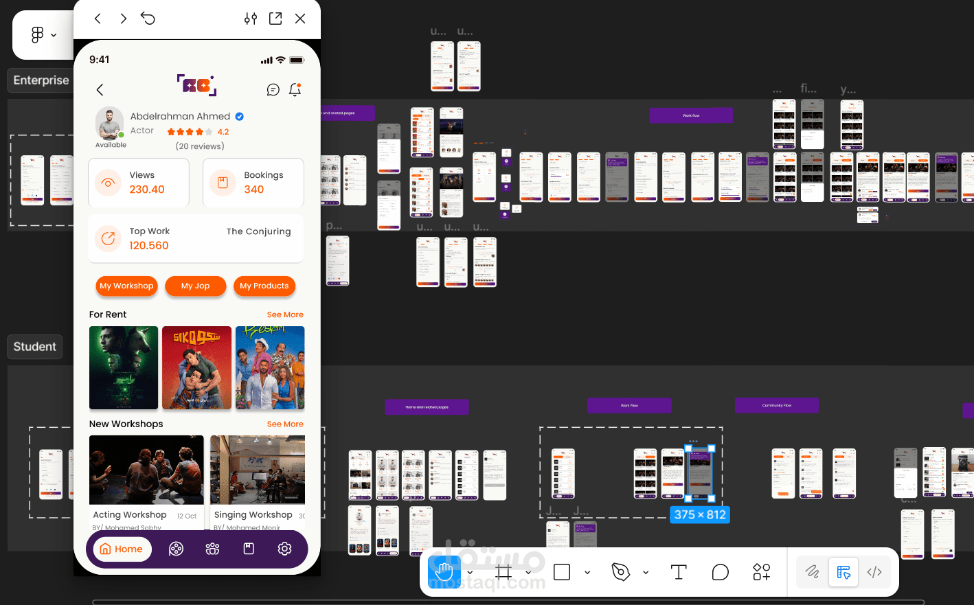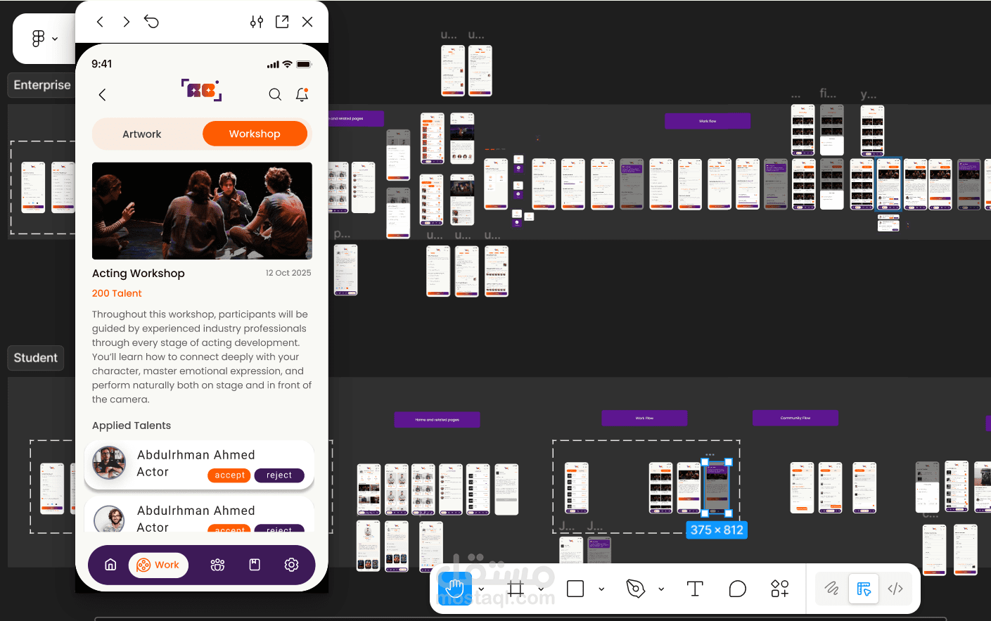 إنشاء نموذج تفاعلي (Interactive Prototype) لمحاكاة تجربة التطبيق.