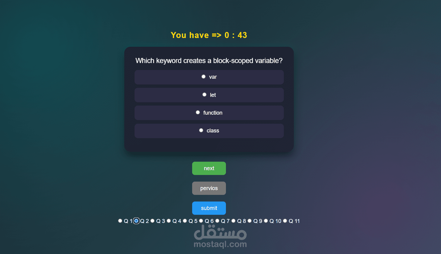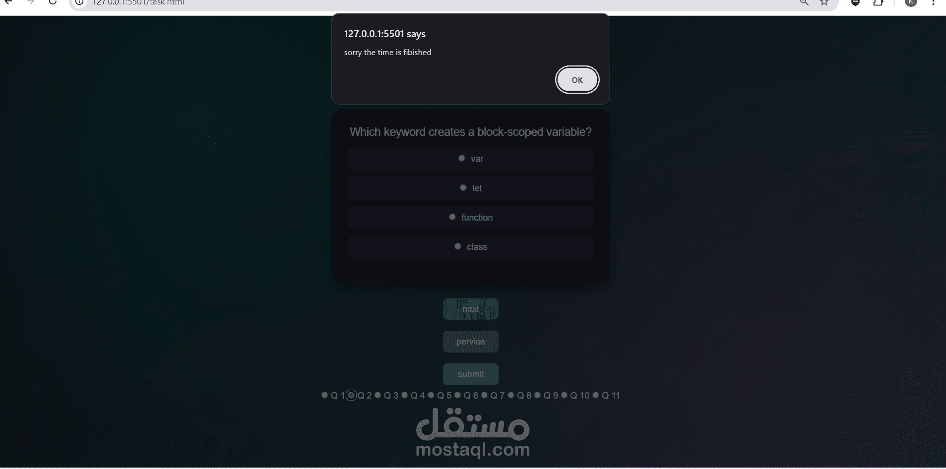 هذا المشروع ساعدني على تعزيز مهاراتي في JavaScript وربط الواجهات بالتفاعل المنطقي، وبناء تطبيقات تعليمية عملية توفر تجربة استخدام واضحة ومنظمة.