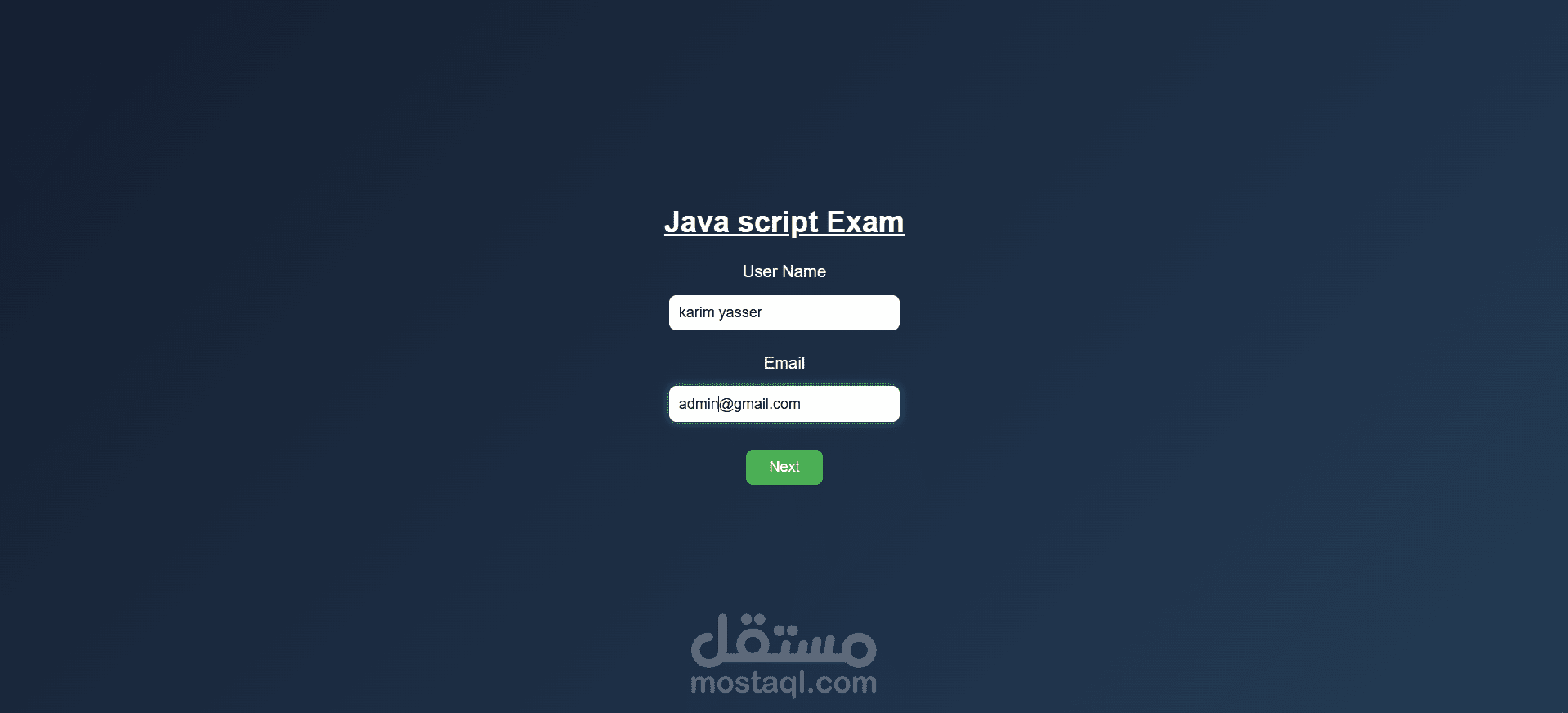 قمت بتطوير نظام امتحانات إلكتروني يتيح للمستخدم بدء الاختبار من خلال إدخال البيانات الأساسية، ثم الانتقال إلى واجهة الأسئلة والإجابة عليها داخل مدة زمنية محددة.