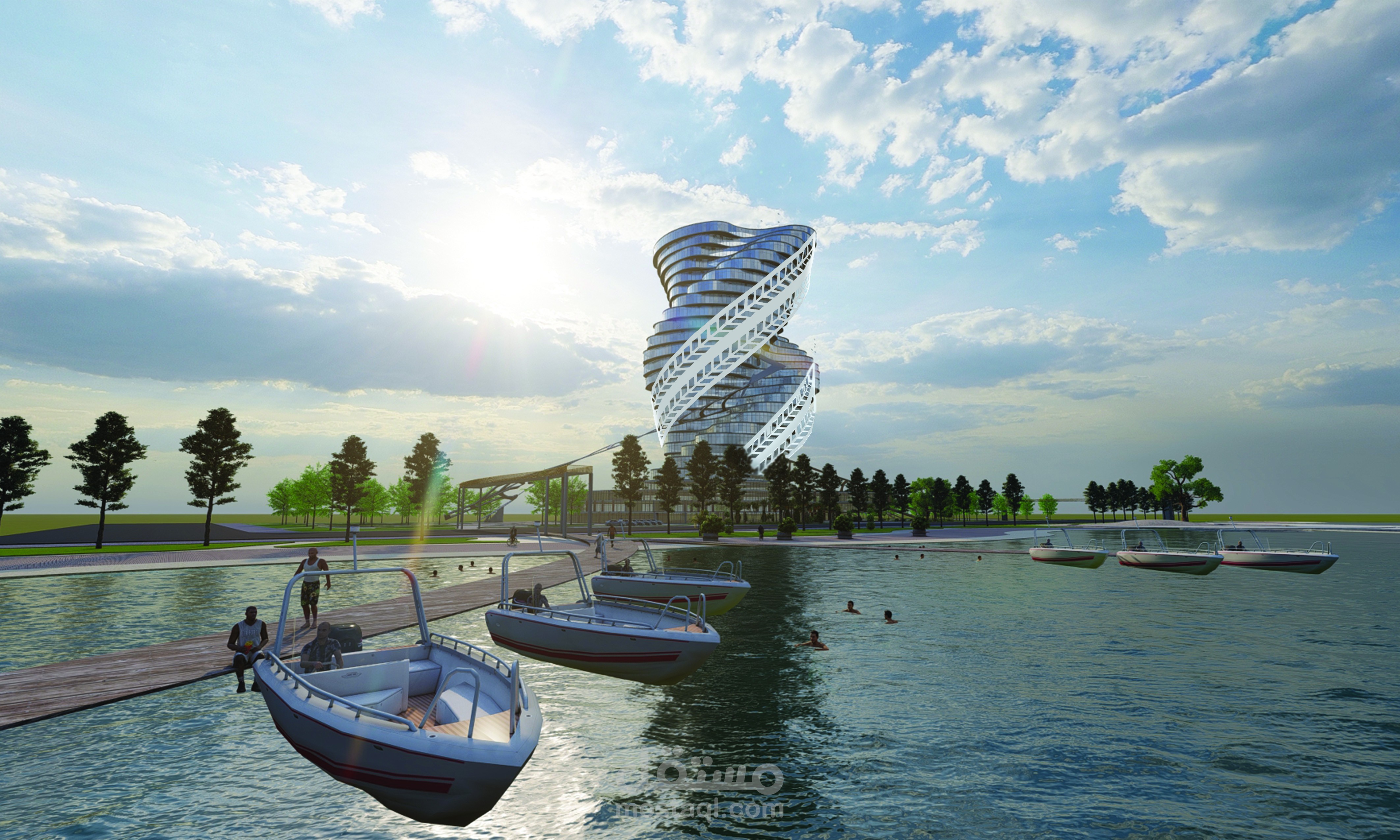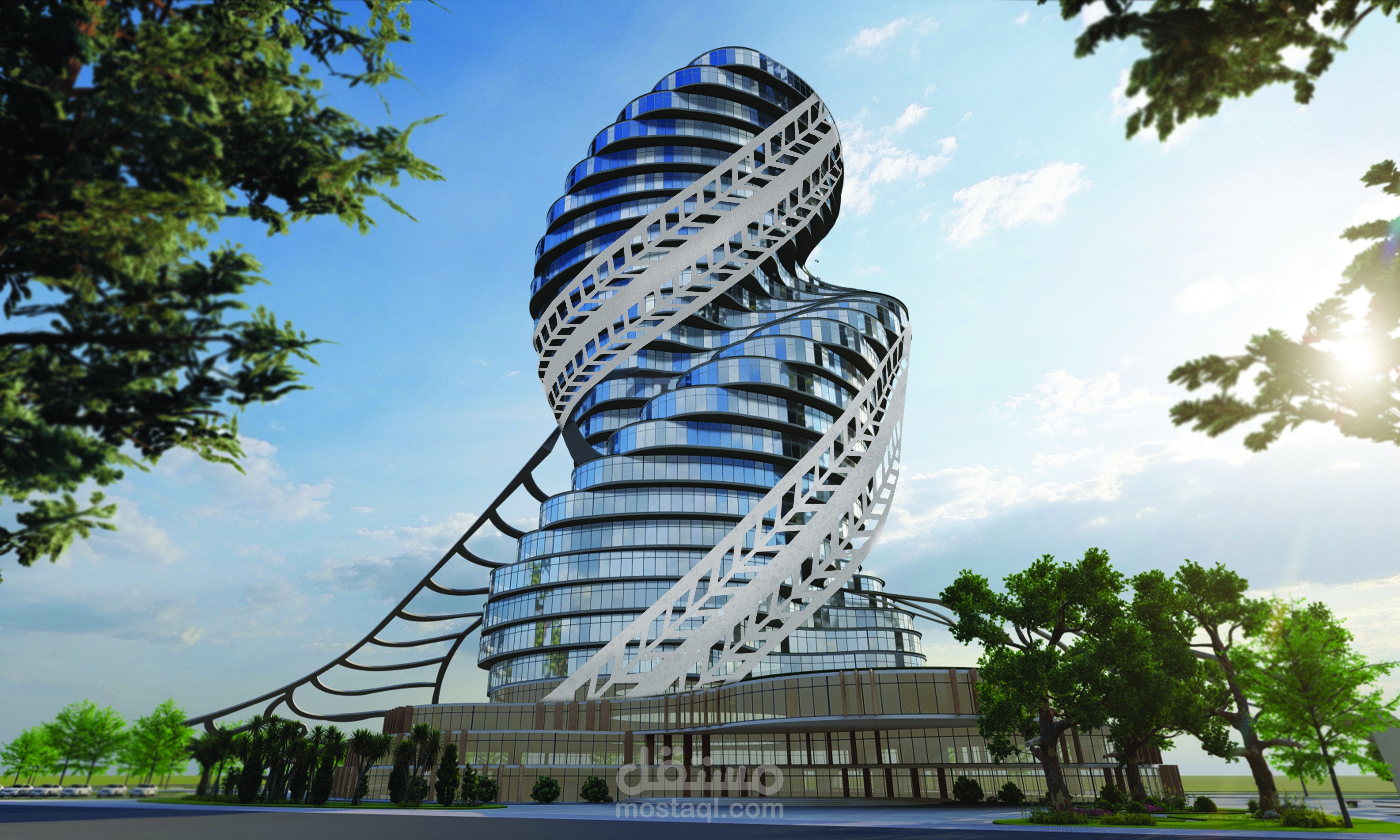 تم تصميم برج متعدد الاستخدامات يجمع بين الوظائف السكنية، التجارية، والخدمية، مع تنظيم رأسي واضح للحركة والفراغات، ومعالجة معمارية للتشكيل الكتلي والواجهات بما يحقق هوية بصرية متوازنة. اعتمد التصميم على دراسة الموقع والمناخ، ودمج مبادئ العمارة المستدامة من خلال تحسين الإضاءة والتهوية الطبيعية، وكفاءة الطاقة، مع استخدام النمذجة الرقمية (BIM) لتطوير المخططات وضمان قابلية التنفيذ والتكامل بين الأنظمة المعمارية.