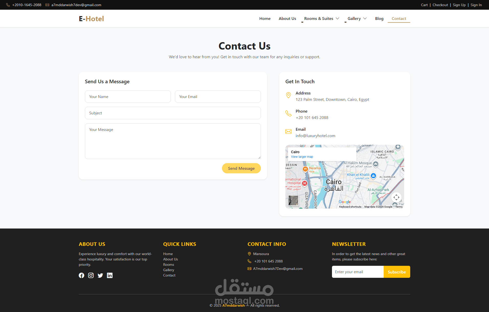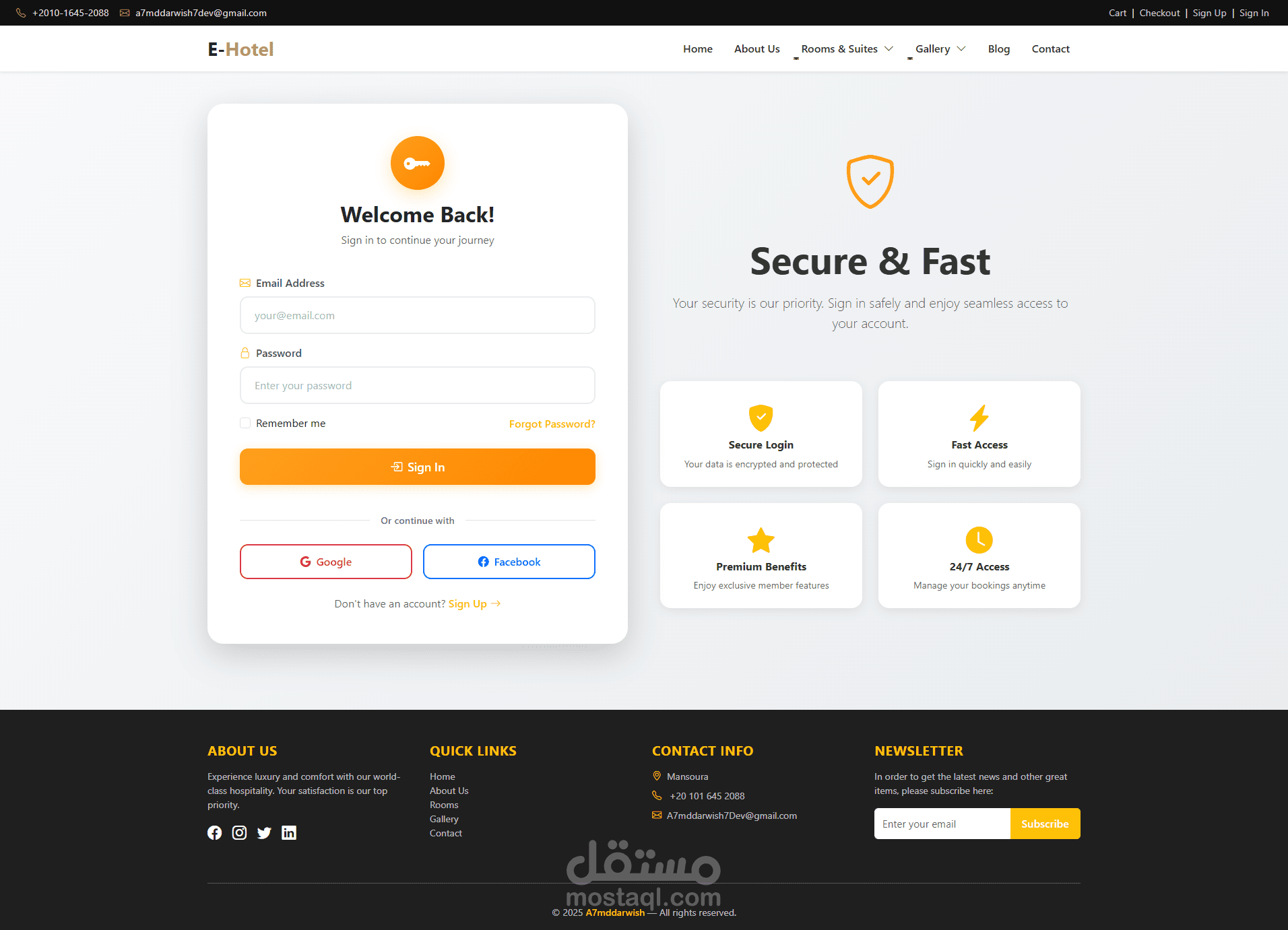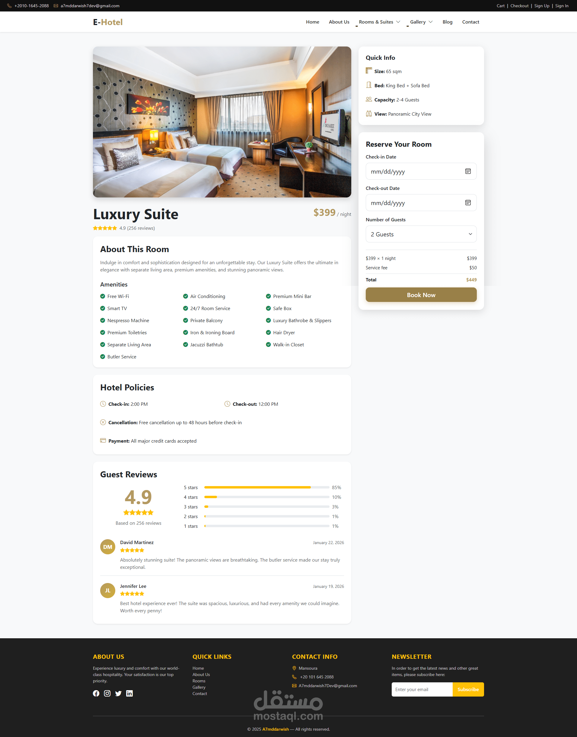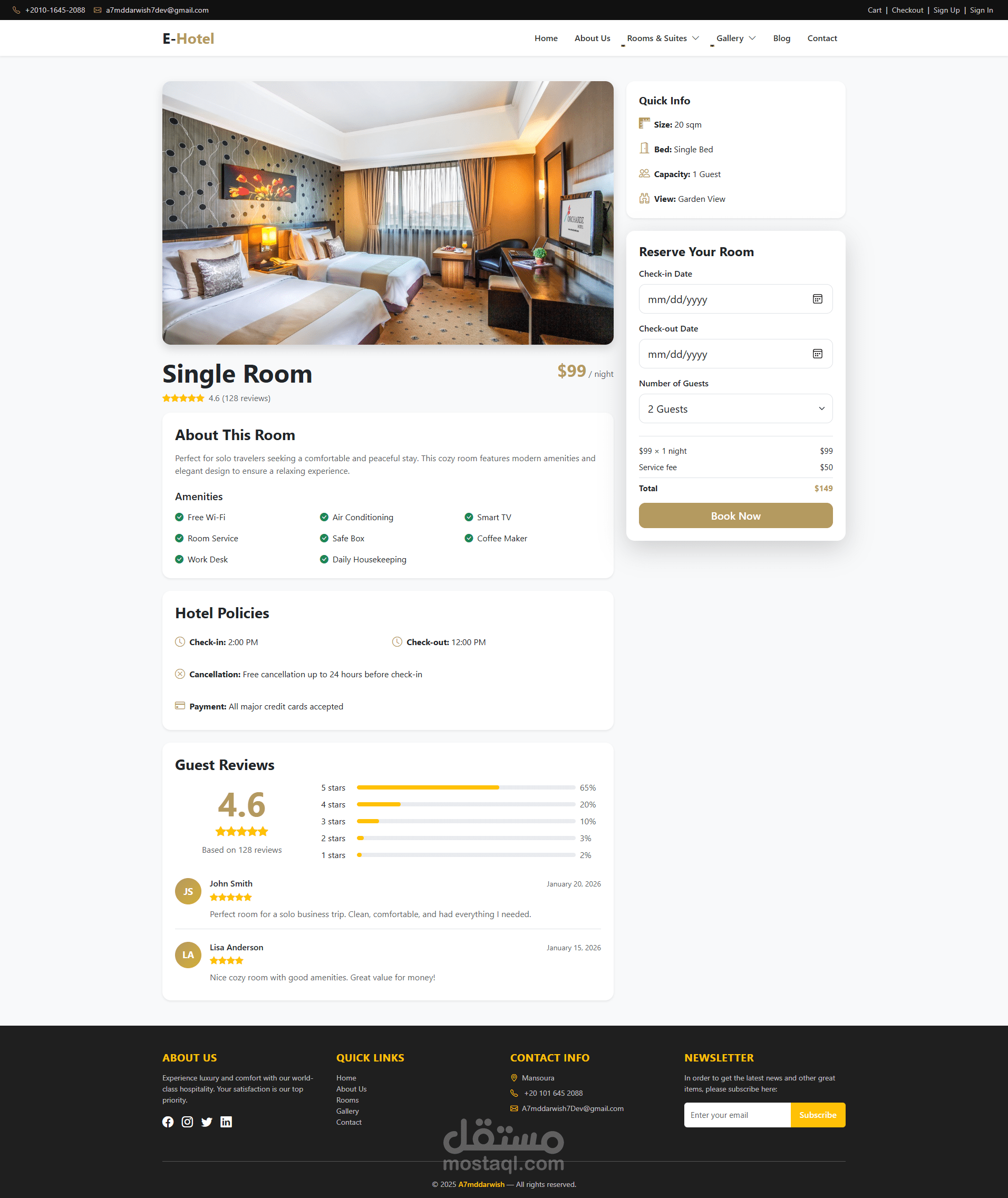 المشروع جاهز للتطوير والتوسع حسب احتياجاتك، سواء لفندق واحد أو سلسلة فنادق كاملة، مع إمكانية ربط بوابات دفع عالمية وإضافة لغات متعددة. استثمار حقيقي في التحول الرقمي لأعمالك الفندقية!