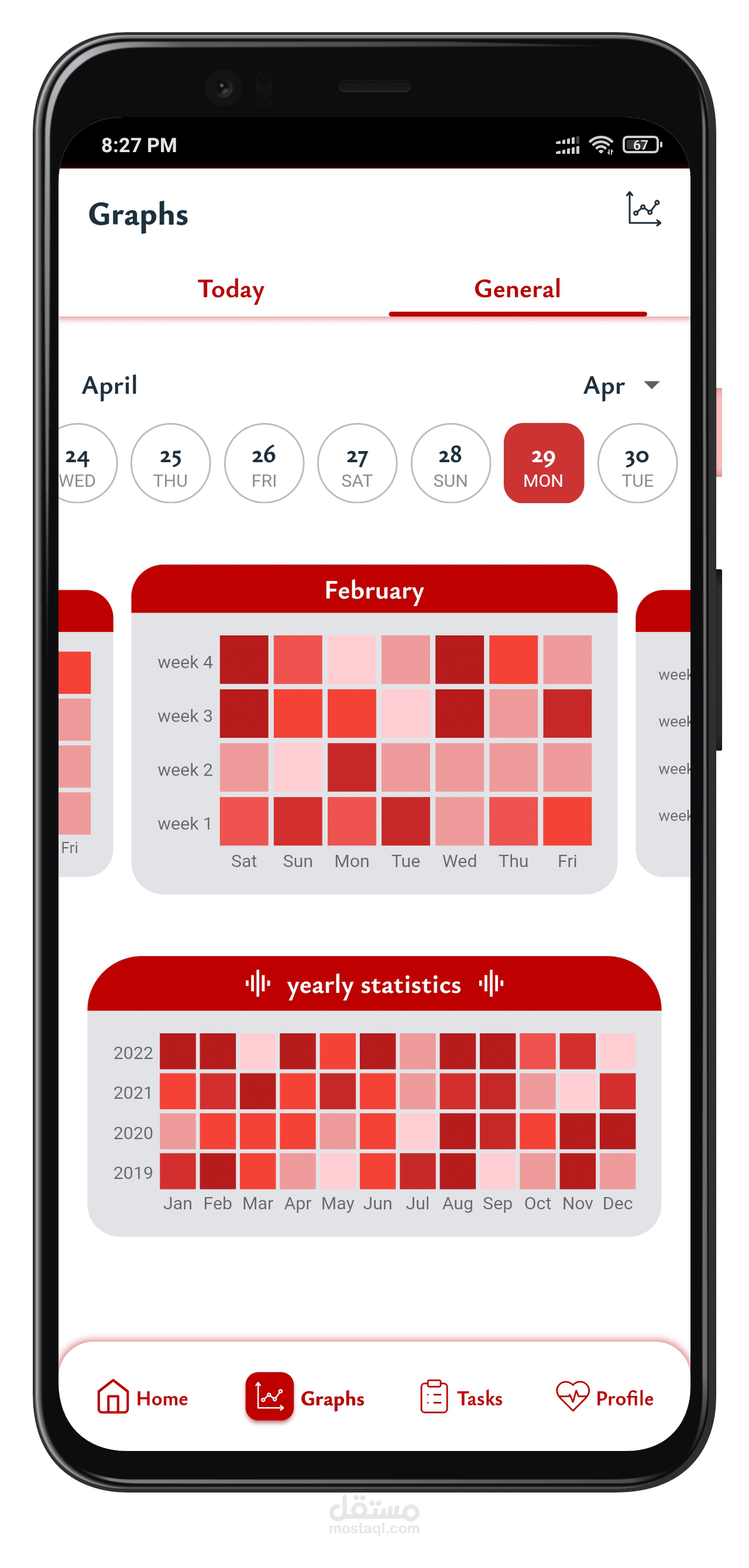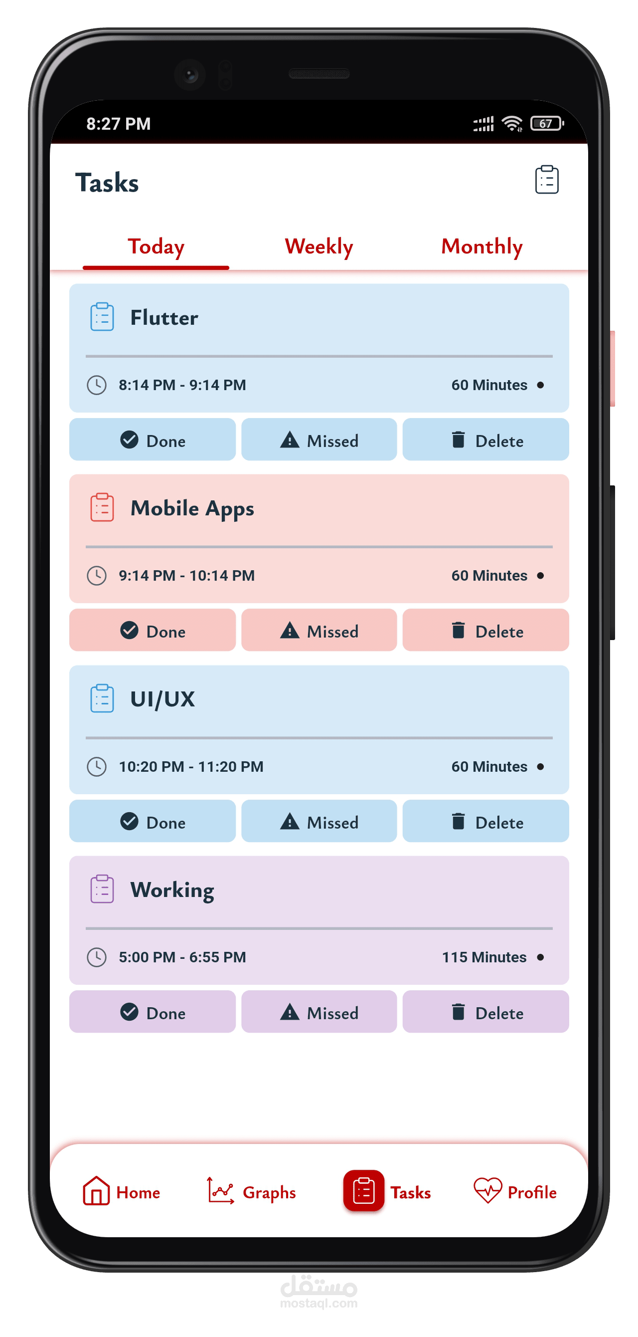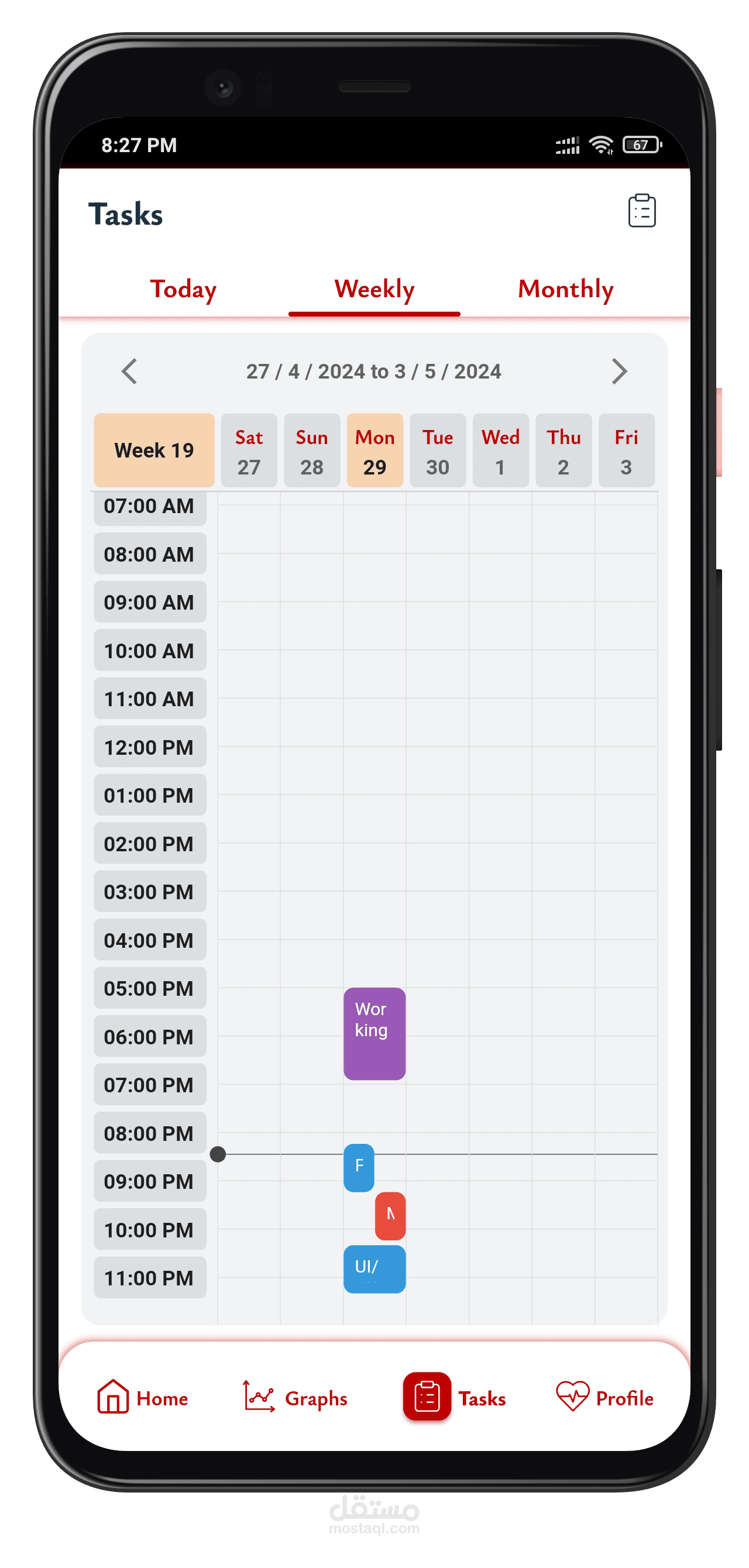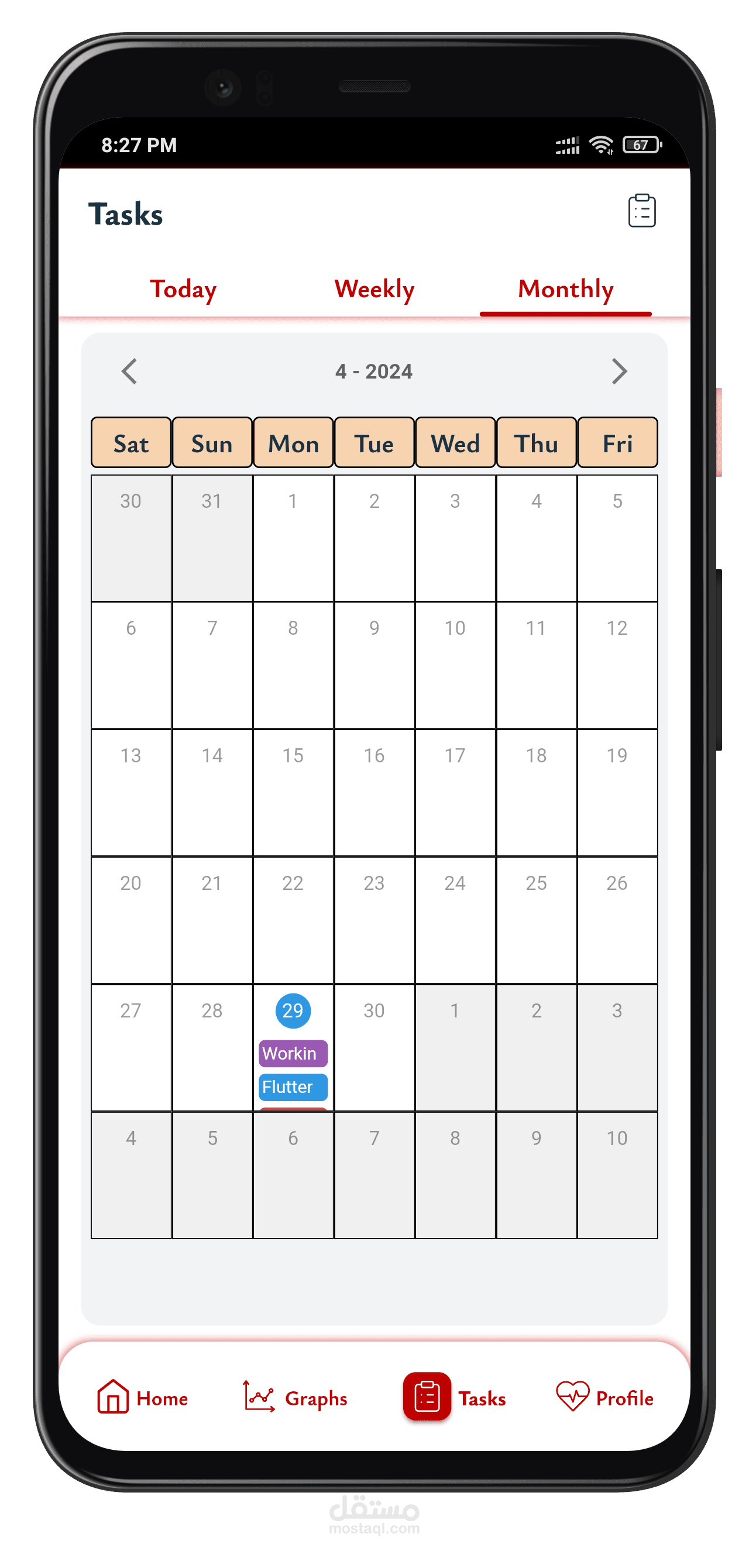 - عرض المهام اليومي، الأسبوعي، والشهري.