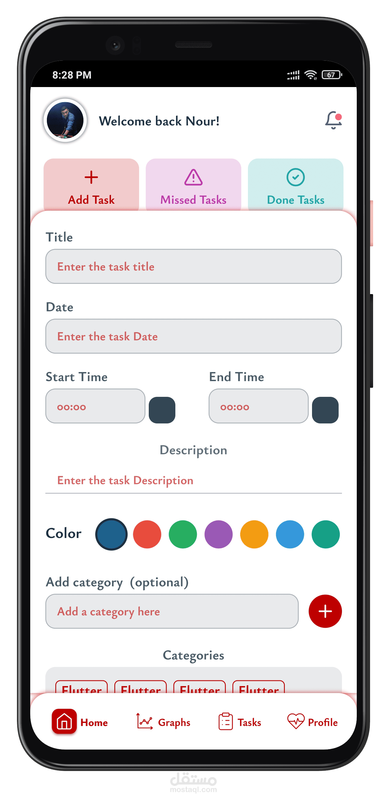 - إنشاء المهام وتنظيمها حسب الأولوية أو الفئة.