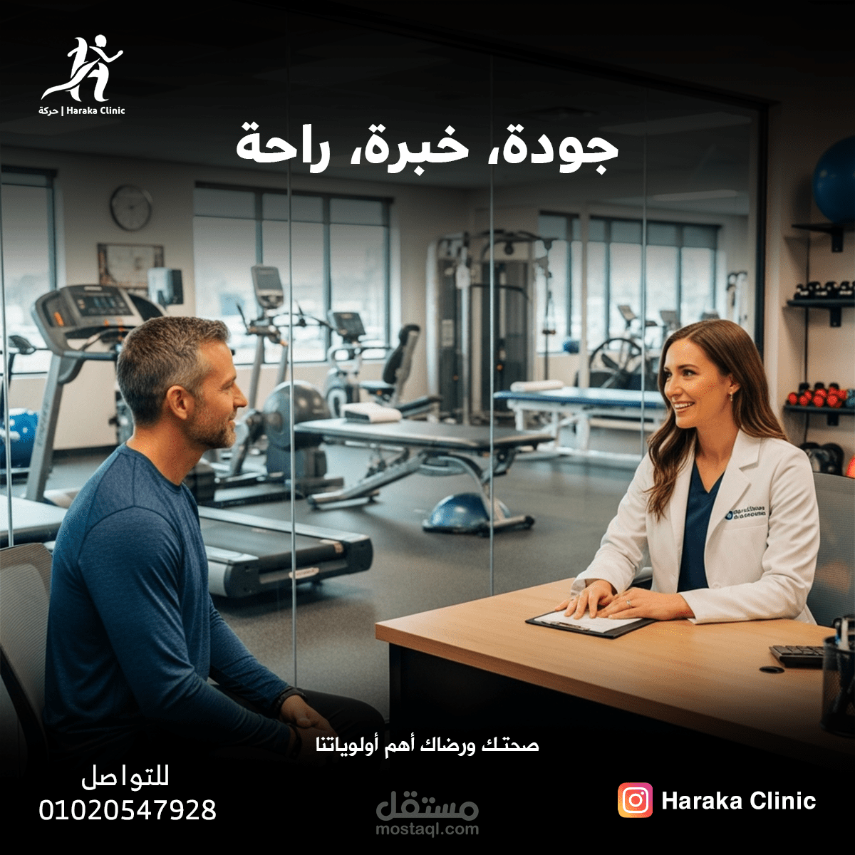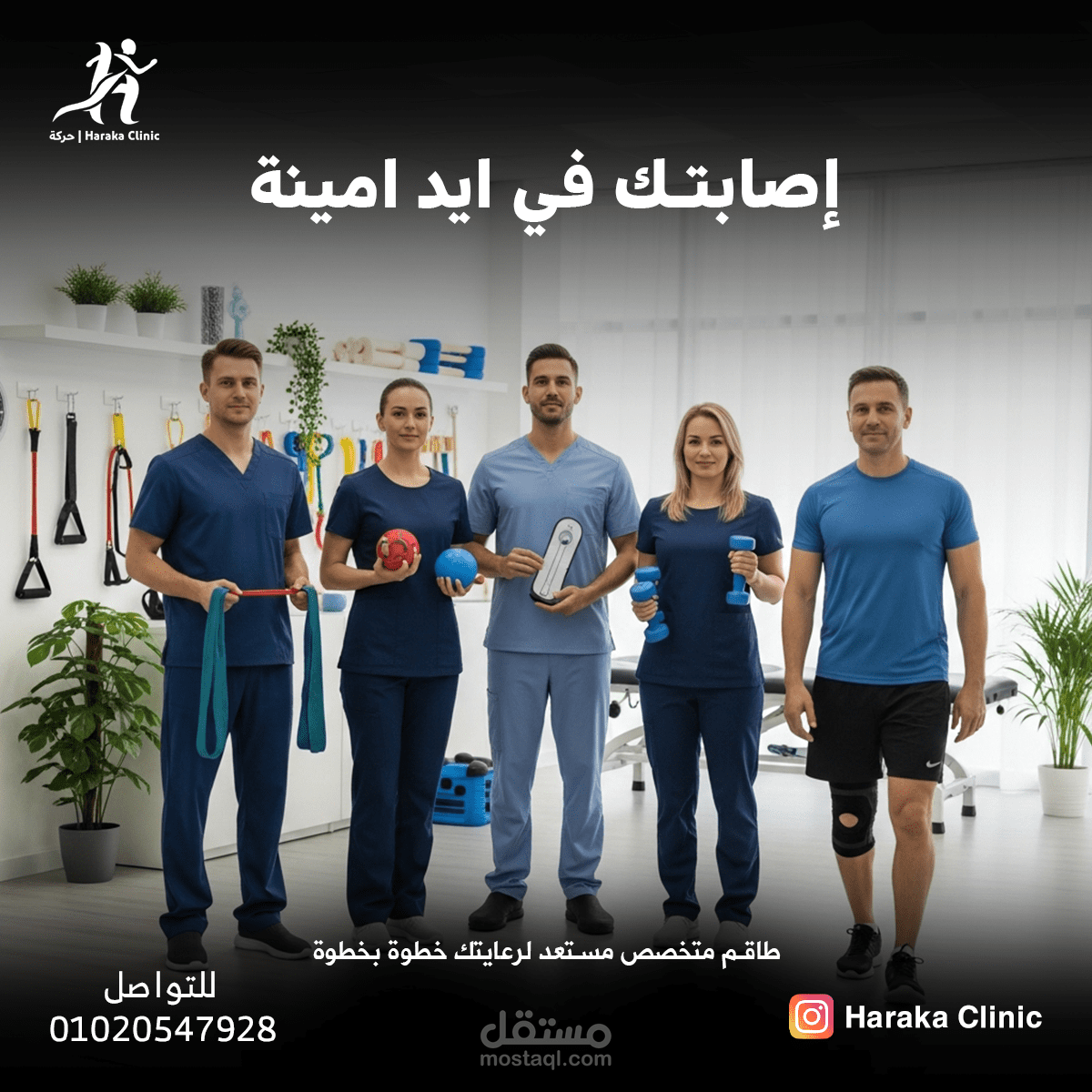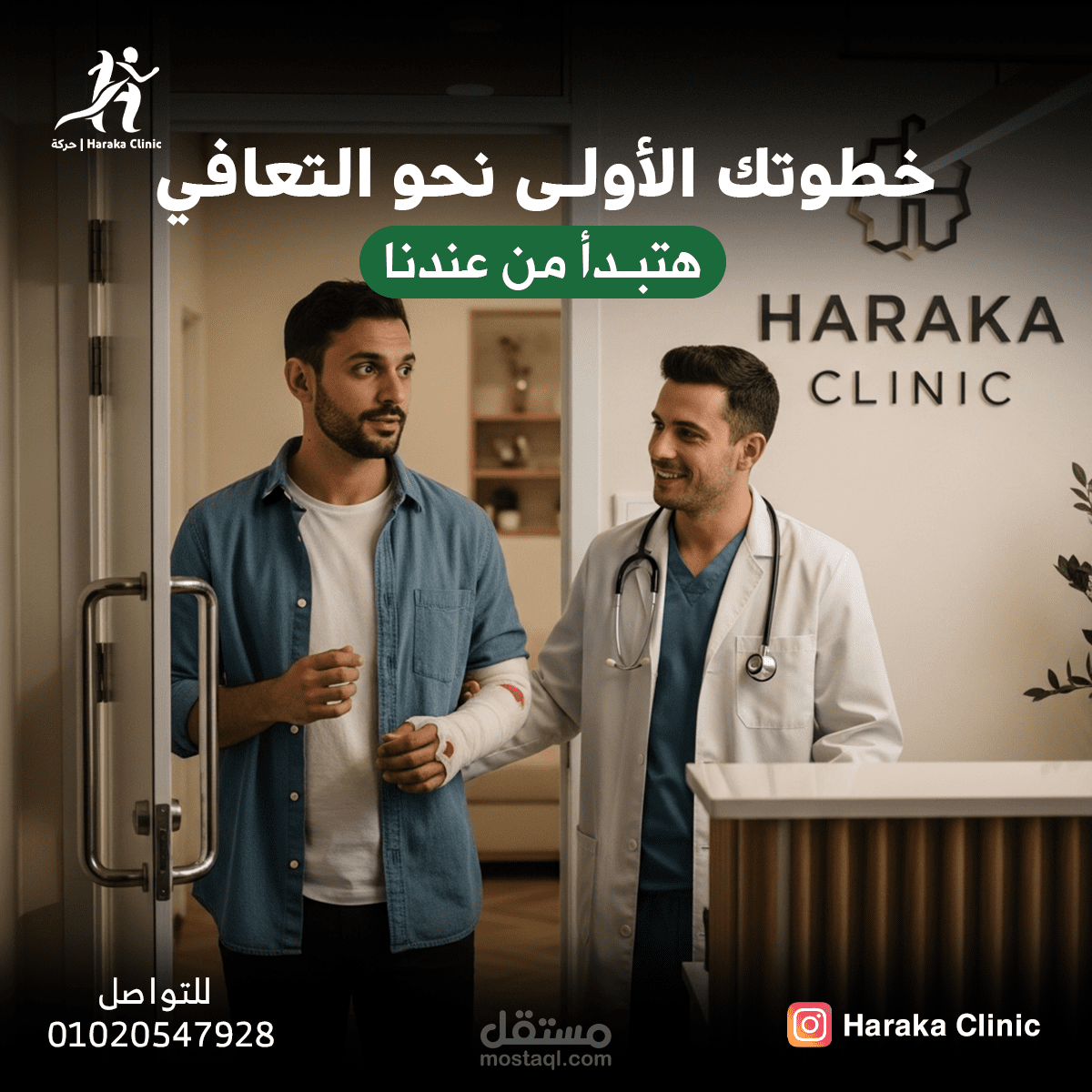 "Six creative social media designs highlighting the patient journey, treatment, and expertise of Haraka Clinic."